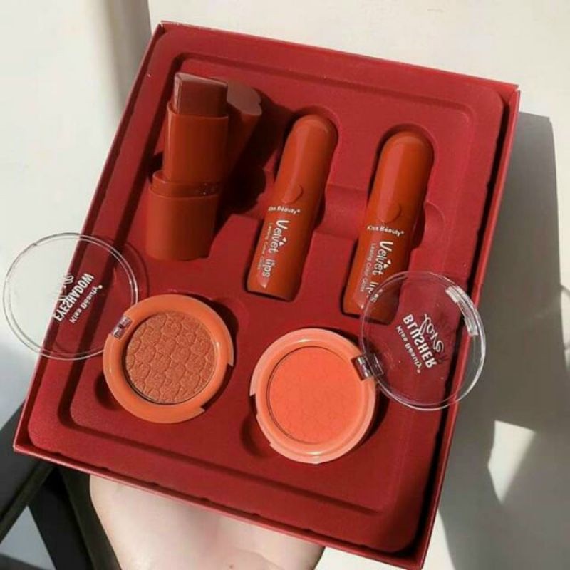 set 5món gồm 2 son lỳ 1 son kem 2 phấn má hồng Giúp các bạn gái tự tin hơn khi trang điểm.........
