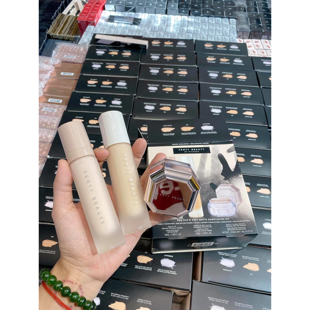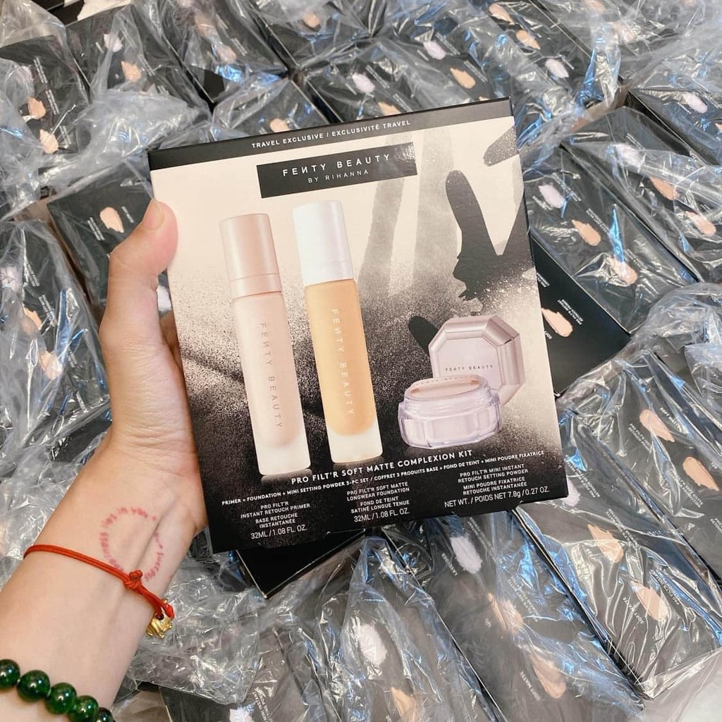 Set make Fen.ty #1480nghìn/set. Gồm lót, nền, phủ bột kiềm dầu glow. Tính ra mỗi món chưa đến 500 ka Trong khi m.ua lẻ 1 món tầm 8-900. Mọi ng chọn cái nào ?