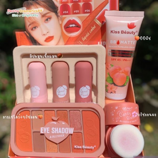 Set gồm 1 màu mắt peach 1 set son kem 3 peach 1 má hồng bột 1 kem lót peach hoặc orange. ..............................