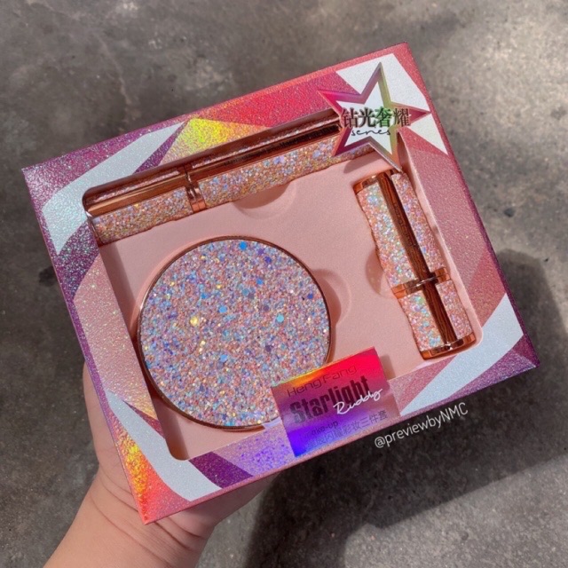 👒Set 3 sản phẩm HENGFANG kim tuyến đẹp xĩu mà giá yêu lắm nhé 🎒. Hàng nội địa Trung set y hình - 1 son thỏi màu đỏ đất - 1 mascara ko lem - 1 phấn nước kiềm dầu
