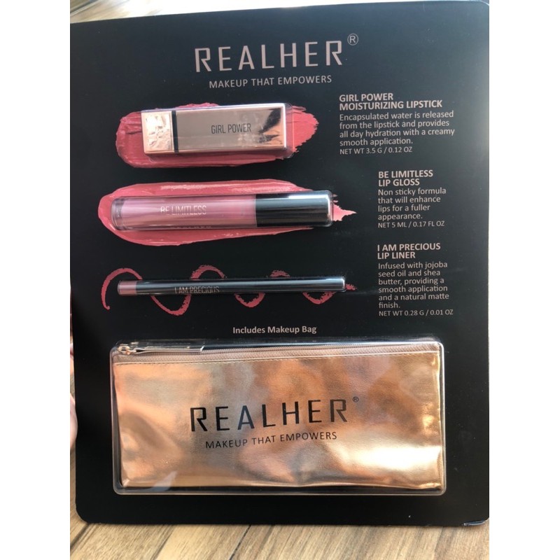 💞Set Realher - 1 trong những hãng chuyên về make up của Mỹ . Combo gồm 💥1 son dưỡng 💥1 son lì 💥1 chì kẻ môi 💥1 túi đựng do trang diem xịn sò Giá 490k