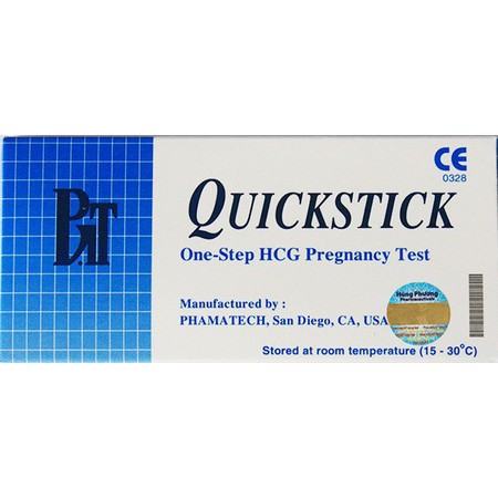 Quickstick là thương hiệu que thử thai đầu tiên ở Việt Nam, được Công ty PHAMATECH sản xuất tại Hoa Kỳ, do Công ty TNHH TM Hùng Phương độc quyền phân phối. Trải qua hơn 20 năm với sứ mệnh thông báo “tin vui” sớm nhất và an toàn nhất cho người phụ nữ. So với các sản phẩm que thử thai khác, Quickstick có độ tin cậy lên đến 99% (que thử thai bình thường khoảng 97%), hạn sử dụng lên đến 3 năm, độ nhạy cao, phát hiện HCG > = 25 mIU/ml (tương đương thai 7 ngày tuổi). Như vậy, chỉ sau 7 ngày , người phụ nữ đang trong kế hoạch sinh em bé có thể kiểm tra mình có thai hay không. Phương pháp này tiết kiệm chi phí hơn so với các phương pháp khác, vì giá sản phẩm Quickstick dao động từ 17,000 đến 20,000 tùy vào giá bán của mỗi nhà thuốc, đại lí. Cách sử dụng que thử thai quickstick như sau: 1. Lấy nước tiểu vào trong ly 2. Xé bao nhôm đựng Que thử thai QUICKSTICK. 3. Cầm QUICKSTICK trên tay theo hướng mũi tên chỉ xuống 4. Cắm QUICKSTICK vào chén đựng nước tiểu sao cho mặt nước tiểu không ngập quá mũi tên. 5. Chờ 5 phút bắt đầu đọc kết quả: Sau 5 phút, lằn vạch ngang màu hồng sẽ hiện ra trên QUICKSTICK bảo hiệu cuộc thử nghiệm đã hoàn tất. Nếu vạch hồng thứ hai hiện ra dưới vạch hồng đầu tiên, đó là kết quả bạn ĐÃ CÓ THAI. Lưu ý: Độ đậm của vạch hồng thứ hai phụ thuộc vào tuổi thai của bạn + Nếu không có vạch hồng thứ hai hiện ra, bạn KHÔNG CÓ THAI. 10 lưu ý quan trọng cần thực hiện để thử thai chinh xác QUICKSTICK có thể phát hiện thai từ 7 đến 10 ngày sau. QUICKSTICK có thể sử dụng bất cứ lúc nào, nhưng tốt nhất nên lấy nước tiểu để thử vào lúc sáng sớm sau khi thức dậy. Sau khi xé bao nhôm đựng dụng cụ thử thai, QUICKSTICK phải được sử dụng ngay trong vòng 10 phút. Mỗi que thử thai QUICKSTICK chỉ sử dụng cho một lần duy nhất. Không được để que thử thai QUICKSTICK bị ướt trước khi sử dụng. Không nên sử dụng hàng đã quá hạn dùng. Bịch hút ẩm (SORB-IT)R màu trắng chỉ có tác dụng bảo quản que thử thai, không được dùng trong quá trình thử. Phụ kiện kèm theo QUICKSTICK như: vỏ hộp, chén nhựa và giấy hướng dẫn sử dụng được gia công tại Việt Nam. QUICKSTICK – Dụng cụ thử thai nhanh được Công ty PHAMATECH sản xuất tại Hoa Kỳ. Bảo quản QUICKSTICK ở 15 – 30oC.