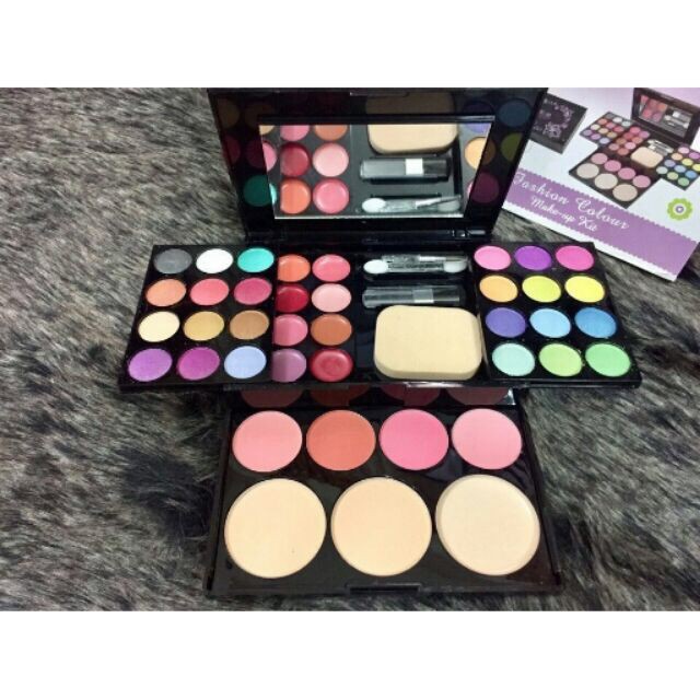 Sản phẩm bao gồm: 24 màu mắt 04 má hồng 08 màu son môi 03 màu phấn phủ kèm cọ bông phấn cọ mắt cọ môi gương trang điểm