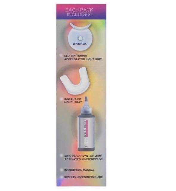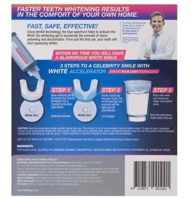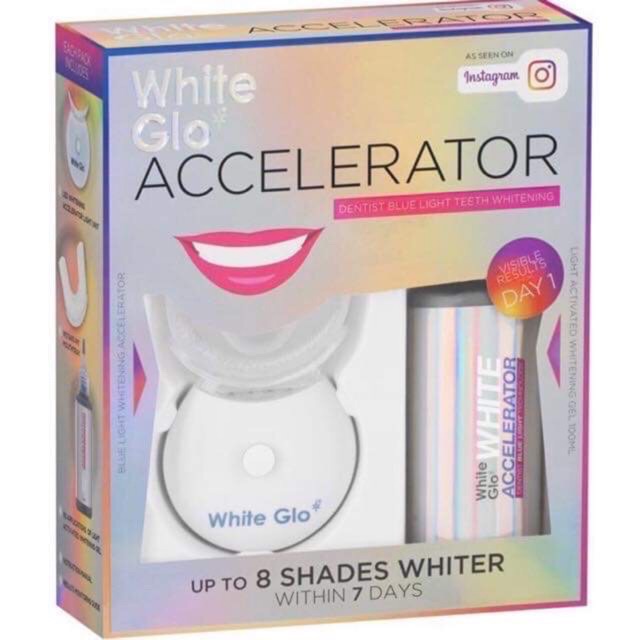 #whiteglo #bluelight #teethwhitening ⚡️✨⚡️ Cái răng cái tóc là vóc con người , muốn có nụ cười toả sáng thu hút sự chú ý của người đối diện thì không thể bỏ qua sp này nhé. LÀM TRẮNG RĂNG BẰNG ÁNH SÁNG XANH WHITE GLO MANG LẠI KẾT QUẢ NHANH CHÓNG White Glo là thương hiệu hàng đầu của Úc về làm trắng và sức khỏe răng miệng. Các nhà nghiên cứu của White Glo luôn luôn đi tiên phong trong lĩnh vực chăm sóc và bảo vệ răng miệng, các sản phẩm của chúng tôi luôn đặc yêu tố sức khỏe của khách hàng là trên hết. 💥💥 Bộ làm trắng răng ánh sáng xanh White Glo White Accelerator Blue Light Teeth Whitening 💥💥 🌾 Sử dụng công nghệ làm trắng với ánh sáng xanh chuyên dùng trong nha khoa giúp kích hoạt gel làm trắng White Glo để đẩy nhanh việc loại bỏ các vết bẩn, vàng và biến màu. Thao tác đơn giản, dễ dàng để làm tại nhà 🌾 Sử dụng công nghệ ánh sáng xanh LED của nha sĩ để tăng tốc kết quả làm trắng 🌾 Từ lần sử dụng đầu tiên, răng của bạn bắt đầu xuất hiện trắng hơn. Bao gồm khay miệng với công nghệ nha sĩ kèm theo ánh sáng màu xanh và gel làm trắng trắng tăng tốc trắng đặc biệt. 🌾 Bộ Kit bao gồm 2 dụng cụ: + 1 khay răng với công nghệ nha sĩ ánh sáng xanh + 1 tuýp gel làm trắng. 📝Hướng dẫn sử dụng: ☘️Lấy một lượng gel làm trắng vào khay răng. Đặt khay răng vào miệng và bật đèn. Đèn sẽ tự động tắt sau 10 phút. ☘️Xúc miệng sạch với nước. ☘️Làm liên tiếp trong vòng 7 ngày để cho một hàm răng trắng sáng và nụ cười tỏa nắng nhé 🥰🥰