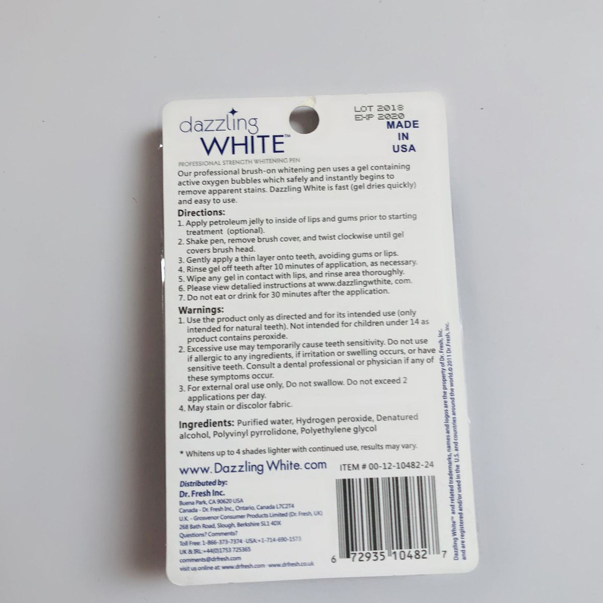 1Pcs Dental Teeth Whitening Tooth Cleaning Rotary Peroxide Bleaching Features: This professional strength whitening brush-on paint pen allows for a thin application of whitening gel. The active oxygen bubbles instantly remove to remove stains. It is ph neutral & easy to apply. The gel dries quickly, so it will not rub off Powerful Whitening: it brings the power of professional whitening directly to you in a convenient gel pen. Powerful Results: within just 1 week you will be able to whiten your teeth up to 4 shades whiter. Convenience: can travel with you, so you can easily whiten on-the-go to ensure that whitening treatments are not missed. Most Effective: paint on whitening is the most effective method of teeth whitening because it begins the whitening proces Specifications: material: anhydrous gel + microcapsule sustained release color:white Net content: 2ml Package Included: 1 * Teeth whitening pen Note: 1. Please allow slight error due to manual measurement. Thanks for your understanding. 2. Monitors are not calibrated same item color displayed in photos may be showing slightly different from the real object. Please take the real one as standard.