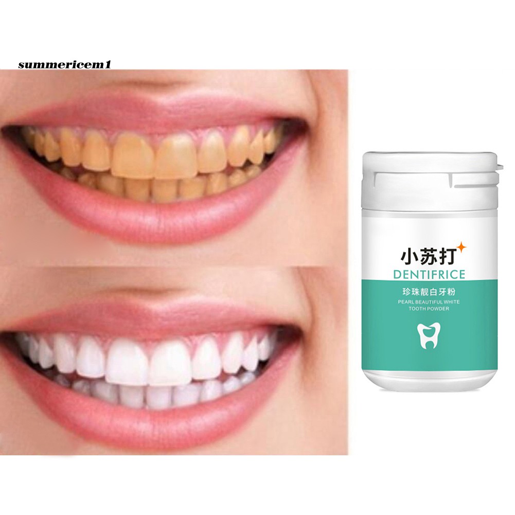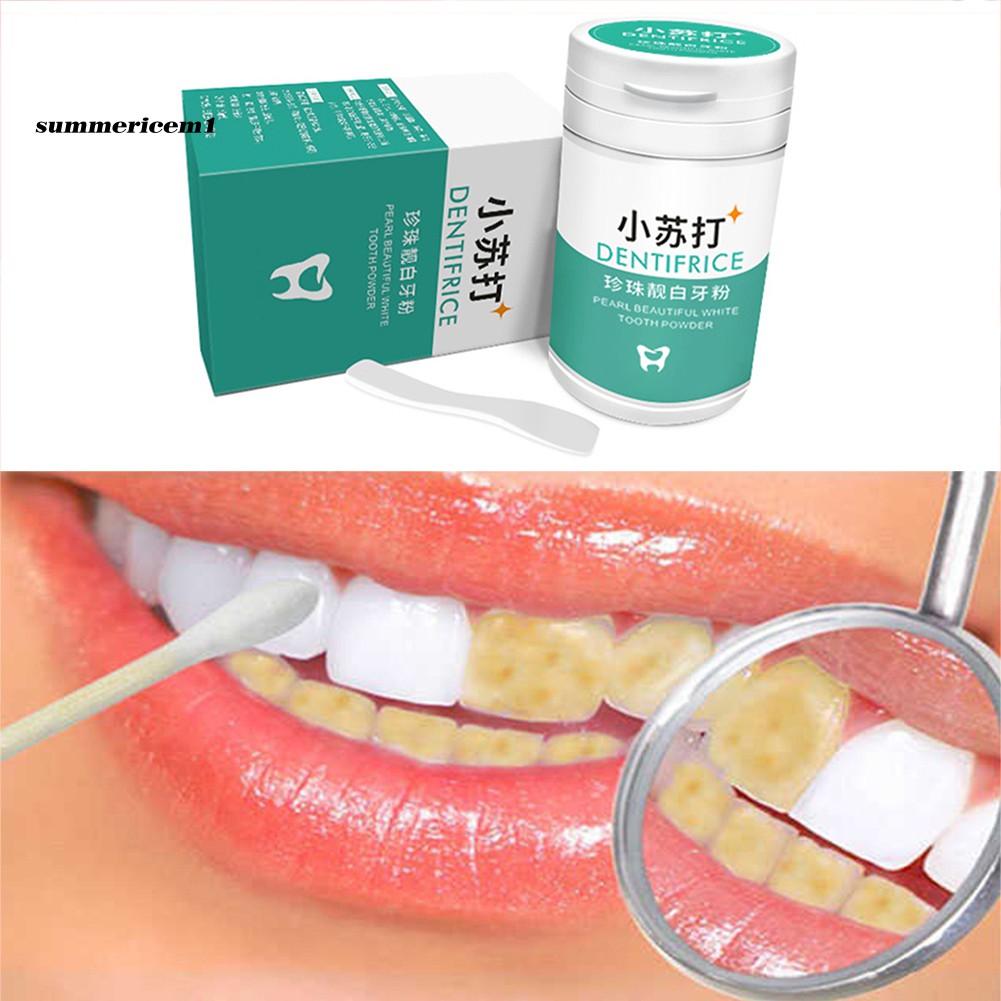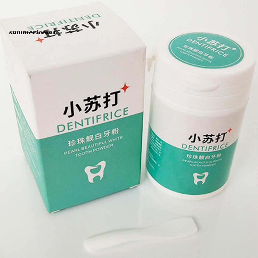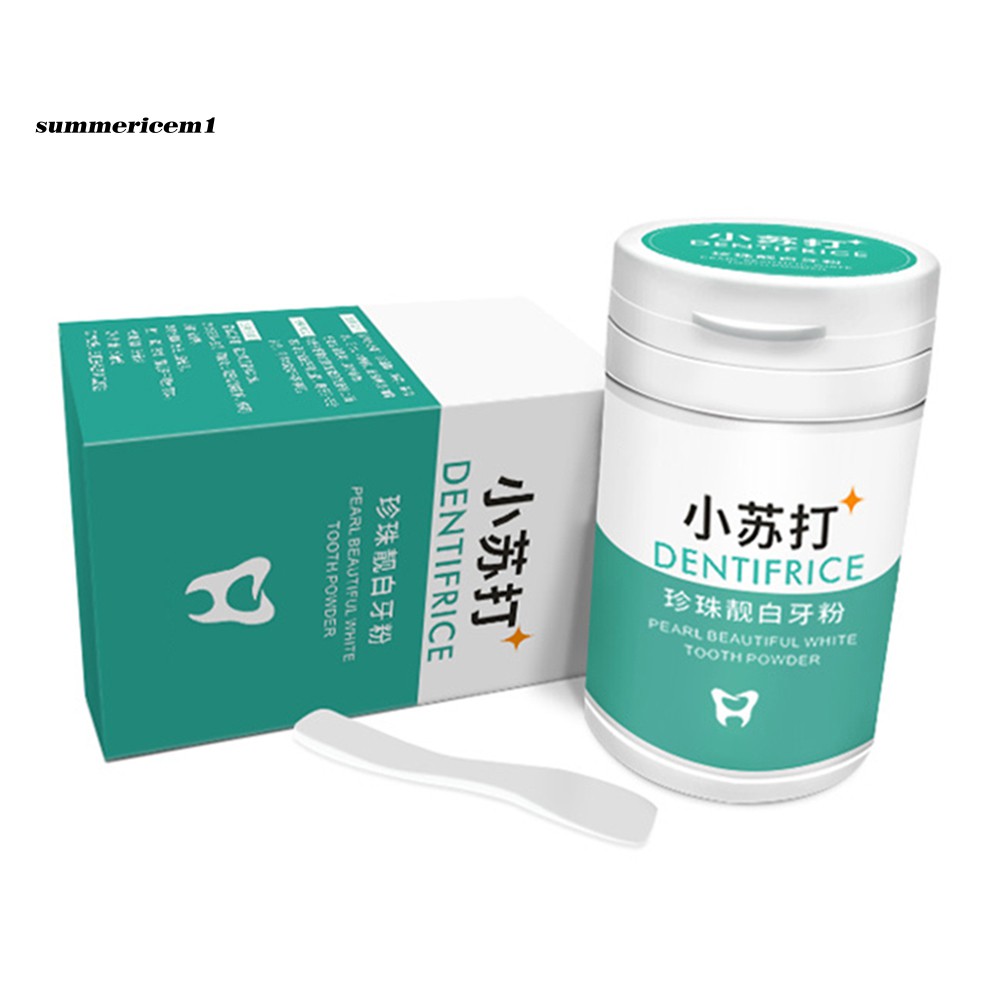 Specifications: Whitening teeth, removing stains, removing smoke stains, removing bad breath. Prevention and treatment of oral ulcers, bleeding gums suppressed. Effective promotion of oral metabolism, improve oral immunity. Nutrition gums, prevent receding gums, teeth prolong life. Improving the oral environment, reduce oral disease. Item Name: Tooth Powder Material: Plastic Ingredients: Baking Soda, Pearl Powder, Mint, Tea Saponin, Xylitol, Gluconolactone, Toothpaste Grade Siloxane, Thymol Net Content: 50g Features: Teeth Whitening, Removal Stain, Fresh Breath Diameter: 4cm/1.57", Height: 6cm/2.36" (Approx.) Notes: Due to the light and screen setting difference, the items color may be slightly different from the pictures. Please allow slight dimension difference due to different manual measurement. Package Includes: 1 x Tooth Powder 1 x Spoon