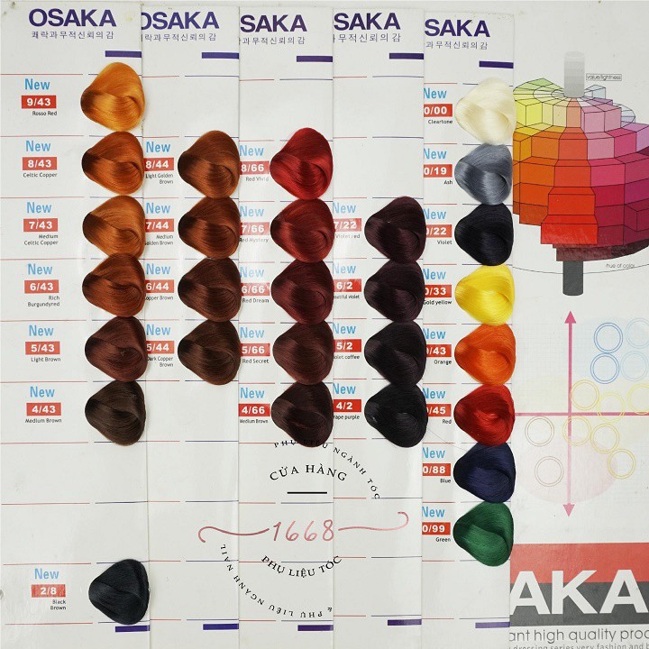 BẢNG MÀU OSAKA Bảng màu Osaka dùng để trưng bài mẫu các màu nhuộm dành riêng cho dòng nhuộm tóc Osaka. Sản phẩm nhuộm được ưa chuộng hiện nay. Giúp khách hàng dễ dàng chọn lựa mẫu màu mà mình yêu thích. Bảng màu thực tế chính xác khi cho lên tóc ạ. Bảng màu nhuộm là sản phẩm không thể thiếu ở các salon và các tiệm tóc. Thiết kế kiểu dáng đẹp mắt, sang trọng và chắc chắn sẽ làm hài lòng tất cả các khách hàng dù là khách khó tính nhất.