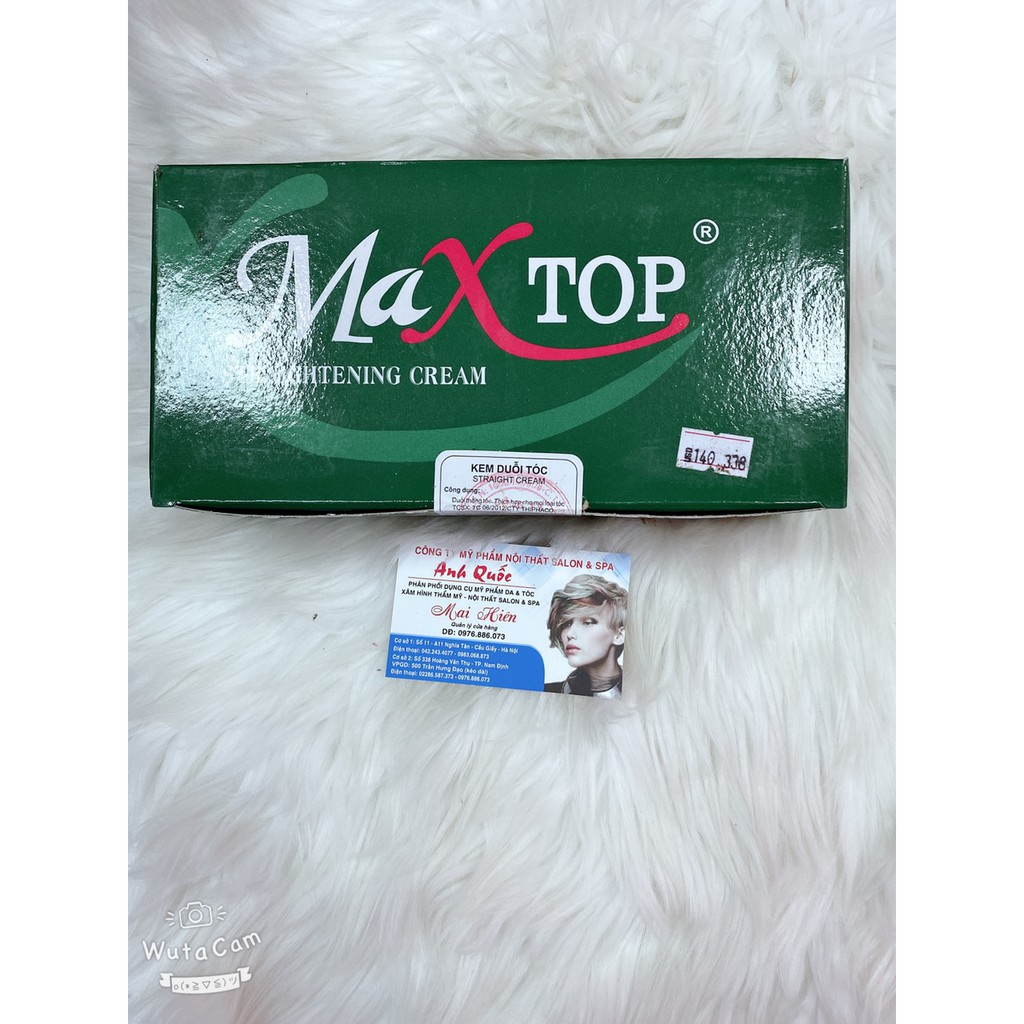 Kem Duỗi tóc Maxtop là sản phẩm làm thẳng tóc nhanh nhất trên ba chất tóc – Tóc Khoẻ – Tóc Trung bình – Tóc Yếu . Mùi hương của thuốc rất dễ chịu .Vì có chứa nhiều dưỡng chất chăm sóc tóc cao cấp.Nên nhanh chóng thấm vào tóc và làm cho mái tóc của các chị em phụ nữ thẳng một cách tuyệt đối mà vẫn giữa độ ẩm cho tóc , hạn chế sự chẻ ngọn và khô xơ hay gãy rụng trong quá trình duỗi tóc . Sau khi duỗi mái tóc của chị em phụ nữ không chỉ mềm mại óng mượt mà còn thẳng rất lâu .Sản phẩm thích hợp với Salon chăm sóc tóc nữ chuyên nghiệp. 🔸QUY TRÌNH ÉP I. Đánh giá và phân loại tóc: Tóc được chia làm 03 loại chính: tóc khoẻ, tóc thường, tóc yếu II. Vào thuốc số 1: Gội sạch đầu rồi pha thuốc khi đã xác định được chất tóc Tóc khoẻ: 100% nguyên chất thuốc số 1 trên nền tóc ẩm Tóc thường: 70% thuốc số 1 + 30% nước và dưỡng (trên nền tóc ướt) Tóc yếu: 50% thuốc số 1 + 50% dưỡng và nước (trên nền tóc ướt – chú ý xịt keratin và dưỡng đầy đủ lên tóc trước khi vào thuốc) Chú ý: Khi gặp tóc nguyên thuỷ và tóc đã qua hoá chất trên cùng 1 sợi tóc người thợ phải đánh giá đâu là phần tóc nguyên thuỷ và tóc qua hoá chất để pha thuốc cho phù hợp (không vào thuốc cùng 1 lượt)