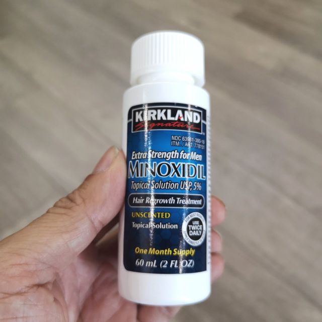 Thuốc mọc tóc, mọc râu Thuốc mọc tóc Minoxidil 5% Kirkland dạng dung dịch là thương hiệu Minoxidil rẻ nhất trên thị trường hiện nay. ✔️Dùng Minoxidil 2 lần một ngày vào buổi sáng và buổi tối. Mỗi lọ đủ dùng cho một tháng 💯 Cần dùng Minoxidil trong 4 đến 6 tháng để có kết quả vì vậy nên dùng 4 tháng trước khi đánh giá kết quả. Để đánh giá khách quan và chính xác, xin hãy chụp ảnh và so sánh trước và sau khi sử dụng 4 tháng. Tránh trường hợp chỉ dùng thử một tháng vì chắc chắn bạn sẽ không thấy kết quả. 💯 Minoxidil 2% dành cho phụ nữ và Minoxidil 5% dành cho nam giới. Đặc biệt hãng Rogaine có loại bọt 5% ngày dùng một lần dành cho nữ giới rất tiên dụng. 💯 Minoxidil có thể dùng để kích thích mọc lông mày và râu