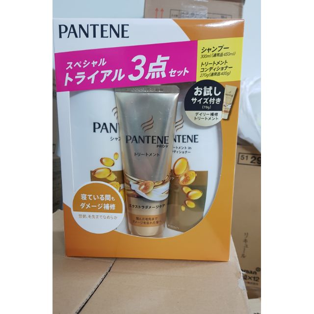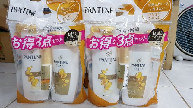Bộ dầu gội xả Pantene - Nhật bản cho mái tóc mượt mà óng ả. Công thức cải tiến chứa Pro-V làm sạch da đầu,dưỡng ẩm,giúp tóc chống lại sự hư tổn,loại trừ các tác nhân gây hại bên ngoài,giữ dộ ẩm cho mái tóc của bạn.Nuôi dưỡng Mái tóc chắc khỏe hơn gấp 10 lần,óng ả,mượt mà,chắc khỏe từ góc đến ngọn.Cung cấp vitamin cần thiết nuôi dưỡng tóc, cho tóc bóng khoẻ, suôn lượt và dễ chải. Khi dùng bộ sản phẩm này bạn sẽ cảm nhận được sự khác biệt rõ nét.Bộ 3 dầu gội Pantene Nhật Bản là sản phẩm được Thái Lan gia công riêng cho Pantene Nhật Bản,Chỉ bán tại thị trường nội địa Nhật rất được ưu chuộng Bộ dầu gội pantene set 3 nhật nắp vàng chuyên dùng cho tóc khô, tóc hư tổn, với dưỡng chất tăng cường, cung cấp vitamin cần thiết nuôi tóc giúp cho tóc bóng khỏe, suôn mượt và dễ chải. Hướng dẫn sử dụngThấm ướt tóc, lấy lượng vừa đủ dầu gội ra lòng bàn tay, rồi thoa lên tóc, massage kỹ và xả sạch lại với nước.Lau bớt nước, lấy 1 lượng kem xả vừa đủ, thoa lên tóc, tránh dây vào da đầu. Massage nhẹ nhàng cho dầu xả thấm sâu và từng sợi tóc, xả sạch với nước.