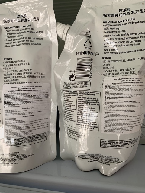THUỐC UỐN /DUỖI TÓC LOREAL X-TENSO 400MLX2 Có 4 loại: Siêu khỏe - Khỏe - Trung Bình - yếu. Loại siêu khỏe : EX Loại khỏe: R Loại trung bình : N Loại Yếu: M Quý khách lưu ý: - Túi số 1 có thế dùng chung để uốn, hoặc duỗi tóc. - Túi số 2 dập uốn riêng và dập duỗi riêng Sản phẩm uốn loreal 400ml x 2 bằng giá với sản phẩm duỗi loreal 400 x 2