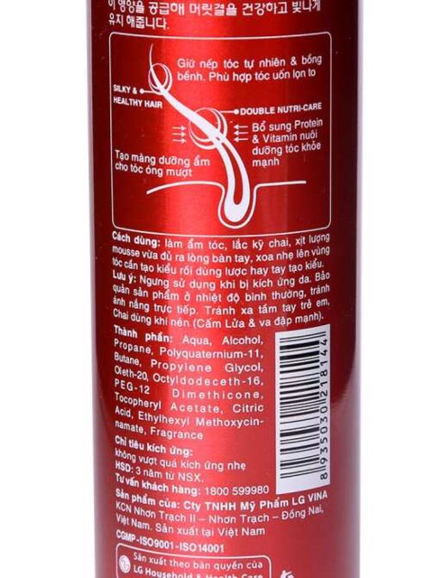 Mousse Dưỡng Tóc Double Rich Soft Hold Chai 150ML được sản xuất theo công thức Nutri Care đã qua nghiên cứu nhiều năm với các thành phần dưỡng tóc an toàn cho da đầu. Sản phẩm giữ nếp tóc tự nhiên và bồng bềnh. Sản phẩm phù hợp tạo kiểu tóc uốn lọn to. Mousse bổ sung protein và vitamin, giúp phục hồi độ ẩm tự nhiên cho tóc khỏe mạnh, óng ả. Bên cạnh đó, sản phẩm còn giúp tạo một lớp màng dưỡng ẩm cho tóc bóng mượt. Hướng dẫn sử dụng Lắc kỹ chai, làm ẩm tóc rồi xịt lượng mousse vừa đủ ra lòng bàn tay Xoa nhẹ lên vùng tóc cần tạo kiểu rồi dùng lược hay tay tạo kiểu Ngưng sử dụng khi bị kích ứng da Bảo quản Bảo quản nơi khô ráo, tránh ánh sáng trực tiếp.