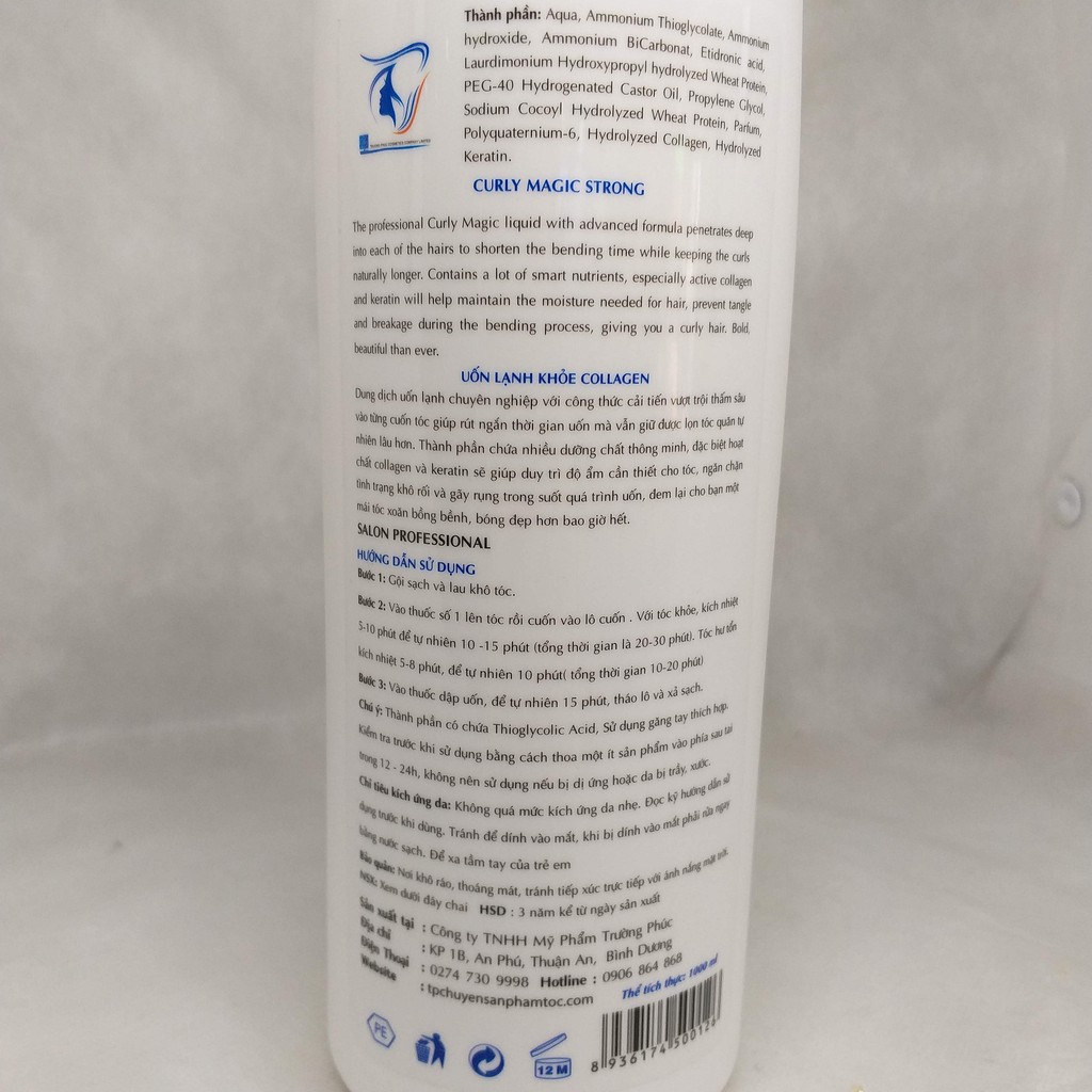 Công dụng: Uốn lạnh siêu dưỡng thế hệ mới giúp tạo sóng tóc xoăn bồng bềnh tự nhiên, giữ nếp bền lâu, màu nhuộm sáng bóng nhờ thành phần nuôi dưỡng, bảo vệ tóc chuyên sâu trong quá trình uốn.Ưu điểm: Thẩm thấu nhanh, giảm thiểu tối đa thời gian lưu kem, giàu dưỡng chất tự nhiên giúp cân bằng độ ẩm cho tóc luôn mềm mại, bóng mượt, đàn hồi.HƯỚNG DẪN SỬ DỤNG: Uốn tóc:Gội sạch tóc, sấy khô 30% Cuốn tóc với ống xương thích hợp Cho kem uốn đều lên từng cuốn tóc. Thời gian lưu kem: Tóc khỏe: 25 – 30 phút Tóc yếu: 15 – 20 phút Khi tóc đạt được độ xoăn như ý, rửa sạch kem trên cuốn tóc Dùng khăn thấm khô phần nước trên tóc Dập tóc: 1. Cho kem dập lên từng cuốn tóc 2. Lưu kem trên tóc từ 15-20 phút tùy theo loại tóc 3. Tháo ống cuốn ra, không nên kéo mạnh lọn tóc xoăn 4. Xả sạch tóc 5. Sấy khô, tạo kiểu