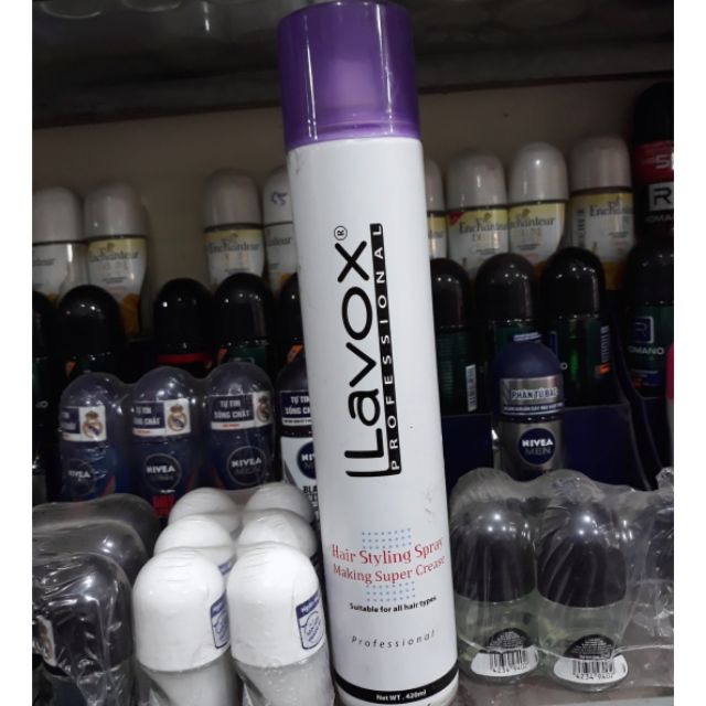 CÔNG DỤNG Bạn sẽ ngạc nhiên về khả năng giữ nếp tóc tuyệt vời của Lavox Hair Styling Spray, với công thức đặc biệt, Lavox Hair Styling Spray có thể mang đến cho bạn những kiểu tóc sáng tạo nhất, những dưỡng chất sẽ cho bạn một mái tóc dày hơn, đầy đặn hơn, không bị tổn hại bởi ánh nắng mặt trời. DUNG TÍCH 420ml HƯỚNG DẪN SỬ DỤNG Để cách xa tóc khoảng 10cm, xịt sau khi gội đầu hoặc trước khi tạo kiểu. Lưu ý: Ngưng sử dụng khi bị kích ứng da. Để xa tầm tay của trẻ em. Tránh tiếp xúc với mắt, nếu sản phẩm dính vào mắt hãy rửa kỹ với nước. Điều kiện bảo quản: Tránh nhiệt độ cao và ánh nắng trực tiếp.