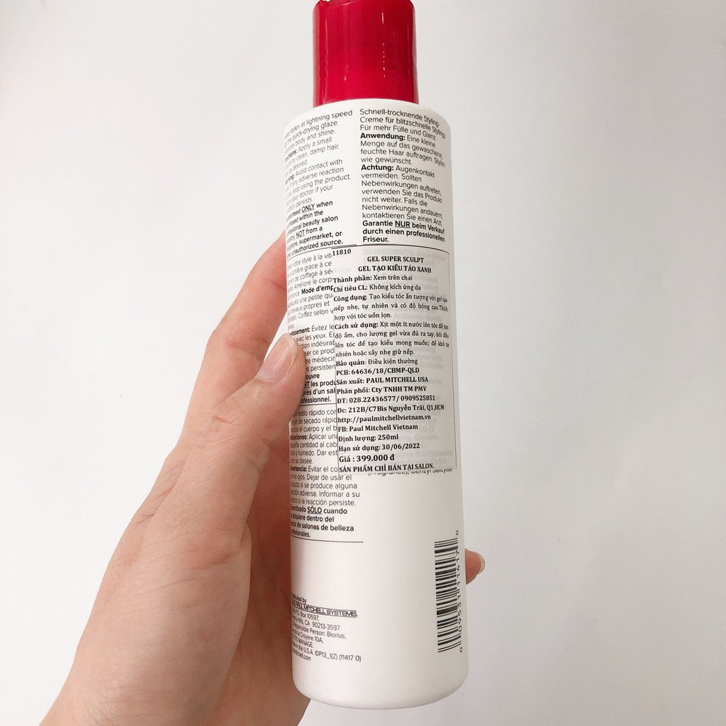 GEL TẠO NẾP TÓC UỐN (MÙI TÁO XANH) PAUL MITCHELL FLEXIBLE STYLE SUPER SCULPT GEL 250ML Công dụng: Tạo kiểu tóc ấn tượng với gel tạo nếp cứng nhẹ, tự nhiên và có độ bóng cao. Đặc biệt dùng cho tóc uốn. Cách sử dụng: Xịt một ít nước lên tóc để tạo độ ẩm, cho lượng gel vừa đủ ra tay, và bắt đầu tạo kiểu mong muốn. Dùng trước hoặc sau khi sấy, hoặc để khô tự nhiên. Thông tin thêm: Gel táo Paulmitchell là sản phẩm bán chạy nhất hiện nay của Paulmitchell, đông thời là dòng sản phẩm cao cấp được nhiều chị em chú ý. CHị em sẽ thấy hài lòng ngay lần sử dụng đầu tiên. Hàng nhập khẩu 100% tại Mỹ. Hiện đã có công ty phân phối độc quyền taị Việt Nam. Cam kết bán hàng chính hãng Công ty 100% Xuất hóa đơn đỏ cho đơn hàng trên 500k nếu khách có nhu cầu và cung cấp MST #paulmitchell #geltaokieutoc #taokieutoc #gelpaulmitchell #geltao #teatree #paulmitchellteatree #lemonsagethickening #lavendermintmoisturizing #superskinnyserum #tinhdauduongtoc #supersculpt #gelgiuneptoc #daugoitrigau #daugoitridau #daugoitringua #daugoipaulmitchell #daugoiteatree