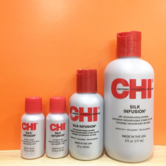 DƯỠNG TÓC CHI SILK INFUSION -- THÔNG TIN: Made in USA GIÁ: 650k _355ml 280k_59ml 400k_177ml 80k_15 ml CHI SILK INFUSION sẽ mang đến cho tóc bạn sự mượt mà và óng ả.Đặc biệt với tinh dầu dưỡng được cô đặc ,chỉ cần cho một ít dầu dưỡng vào lòng bàn tay,xoa nhẹ và bôi lên tóc,bạn sẽ cảm nhận được hiệu quả tức thì của dưỡng bóng tóc CHI,khi từng sợi tóc của bạn sẽ trở nên bóng mượt , tơi đều nằm theo những nếp tóc mà bạn mong muốn. +Dưỡng tóc CHI SILK INFUSION mang lại mái tóc bóng mượt đặc biệt mùi thơm cực kỳ quyến rũ suốt cả ngày +Các bạn sẽ không còn phải lo lắng về mái tóc thiếu sức sống của mình, sợ tóc sẽ bị bết lại và bắt bụi khi dùng dưỡng bóng tóc nữa. -- CÔNG DỤNG: +Giúp tái tạo cấu trúc tóc, đem lại vẻ mềm mại, óng mượt, sáng bóng và chắc khỏe từ trong ra ngoài +Dùng cho tóc hư tổn nặng (khi tóc khô hay tóc mới gội xong còn ướt đều xức được nhé). +Bảo vệ tóc khỏi tác hại của nhiệt và môi trường, giúp tóc mềm mượt óng ả. #xachtay #myphamxachtay #duongtoc #chiduongtoc #myphamchinhhang #myphamxachtayusa #myphamauth #mypham #hangxachtaymy