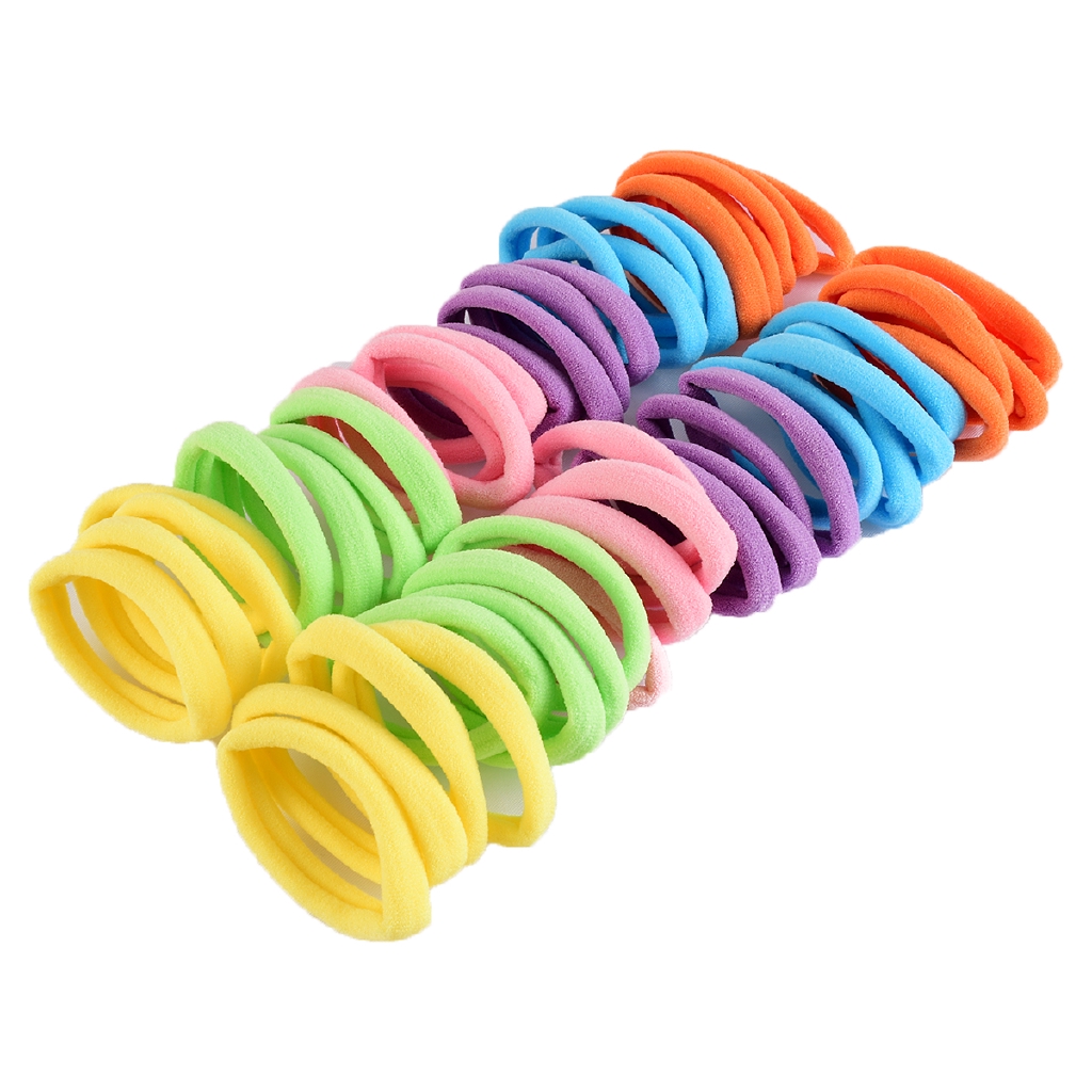 Feature: 100% Brand new and high quality. Quantity: 50 pcs Size Diameter (cm):4.5 Size wide (cm): 0.8 Colors: Random color Material: Elastic High elasticity, both adults and children A variety of colors to meet your needs Package Include: 1 bag hair ties (50pc)