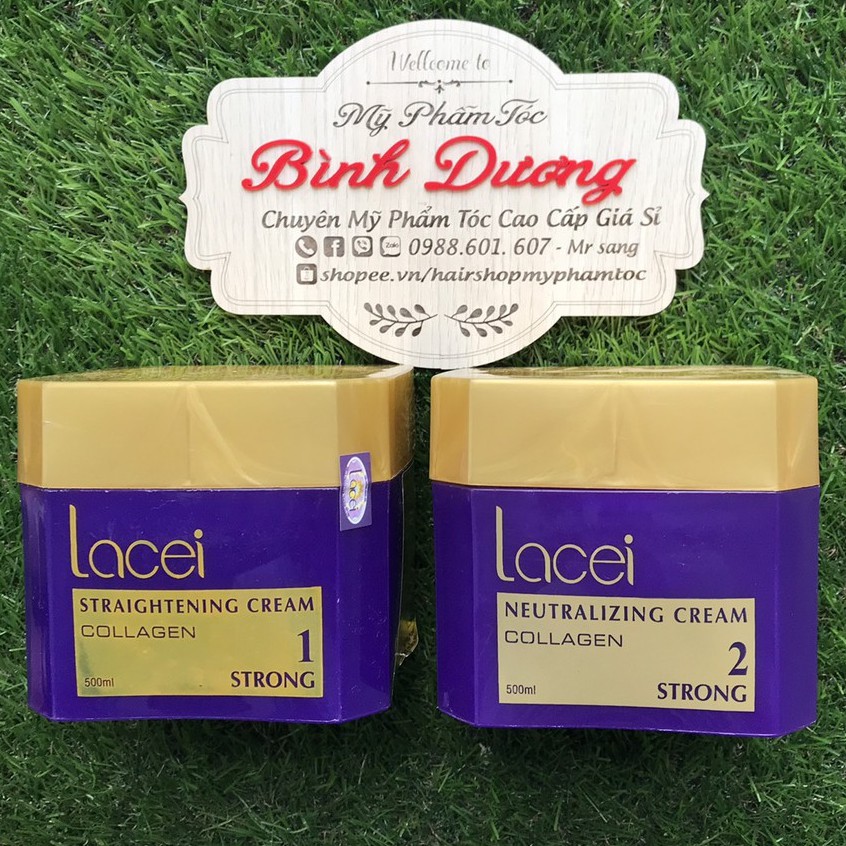 Sản phẩm Thuốc Duỗi Tóc Collagen Lacei Cao Cấp Siêu Bóng Mềm 500Mlx2 hiện đang được bán tại Shopee.