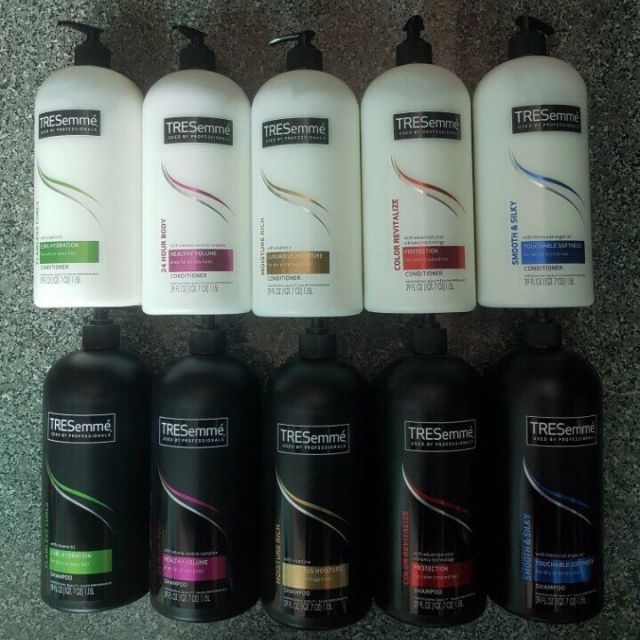 TRESemmé là nhãn hiệu chăm sóc tóc chuyên nghiệp được tin dùng bởi các nhà tạo mẫu tóc trên thế giới. Hãy cùng trải nghiệm TRESemmécho mái tóc đẹp chuẩn Salon mỗi ngày, sẽ giúp mái tóc của bạn phục hồi sau 2 năm hư tổn chỉ sau 5 lần gội. Dầu Gội và Xã TRESEMME PROFESSIONAL PROTECTION là sản phẩm chuyên hỗ trợ dành cho tóc nhuộm giúp cho màu tóc nhuộm bền màu, giúp chống lại sự khô tóc và làm tăng thêm vẻ sáng mượt cho tóc. Giúp tóc phục hồi nhanh chỉ sau một vài lần gội. Dầu Gội và Xã TRESEMME PROFESSIONAL HEALTHY VOLUME dành cho mọi loại tóc. Công thức 24 giờ hỗ trợ cung cấp chức năng điều hòa cho tóc, tránh tình trạng tóc bết dính, kiểm soát lượng protein, giúp tóc luôn suôn thẳng tự nhiên luôn bồng bềnh và dày hơn trông thấy. Màu Đen : Gội Màu Trắng : Xã