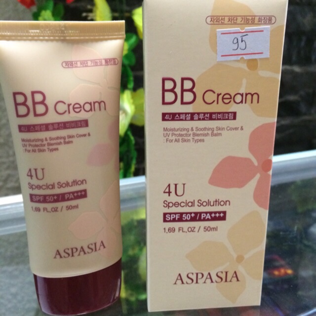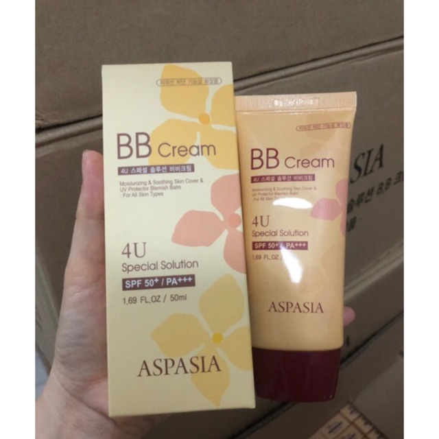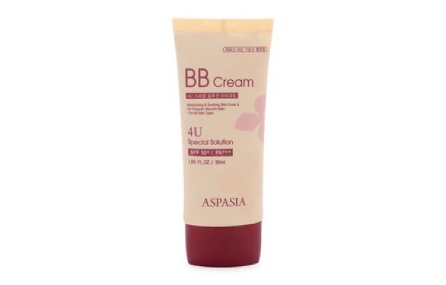 Kem nền Aspasia 4U Special BB Solution Cream SPF50 Pa+++ là 1 loại kem BB đa chức năng, giúp bảo vệ da khỏi ánh nắng mặt trời, che đậy những vùng da sẫm màu, đốm nâu, tàn nhang, đồng thời bổ sung hoạt chất dưỡng trắng da, vitamin và khoáng chất tăng cường độ sáng cho làn da ngả màu.Được xem là sản phẩm sản xuất theo công nghệ hiện đại mang lại cùng lúc nhiều hiệu quả như: làm sáng da, giúp da mịn màng, và cung cấp các khoáng chất giúp da khỏe mạnh.Không chỉ là sản phẩm trang điểm làm sáng da như thông thường, sản phẩm còn cân bằng độ ẩm và tạo cảm giác thông thoáng, thoải mái làn da khi sử dụng. Kem giúp cân bằng độ ẩm, tạo độ thông thoáng da, không gây bóng nhờn. Thích hợp cho mọi loại da.💬💬 Hướng dẫn sử dụng: 1. Vệ sinh da mặt với sữa rửa mặt. 2. Dùng nước hoa hồng để giúp da săn chắc và se khít lỗ chân lông. 3. Dùng ngón trỏ thoa đều kem lên mặt, dùng nhiều hơn ở những vùng cần che khuyết điểm. 4. Nếu muốn khuôn mặt hoàn hảo hơn, bạn hãy đánh một lớp phấn nền, sau đó mới dùng phấn phủ để có làn da mịn màng