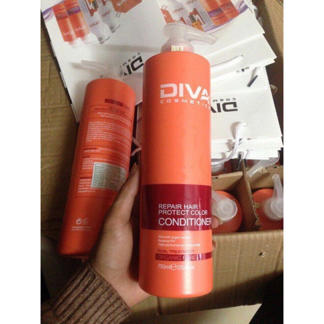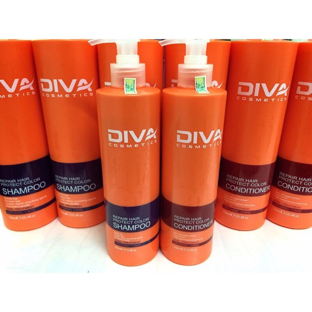 Diva yêu tóc bạn! Cặp đôi gội xả Diva đã giải cứu hàng triệu mái tóc hư tổn trên khắp đất nước. Hương thơm " Gây thương nhớ" và khả năng phục hồi không thể yêu hơn đang làm thổn thức bao trái tim yêu tóc. Dầu gội cao cấp Diva ✔Công dụng - Mở biểu bì tóc và lấy hết mọi bụi bẩn. - Cung cấp dưỡng chất cần thiết cho một mái tóc hư tổn phục hồi lại nguyên trạng ban đầu. - Mang lại một mái tóc có độ bóng mềm mượt cao và một mùi hương quyến rũ dễ chịu ngay từ lần sử dụng đầu tiên. ✔ Cách sử dụng - Xả tóc với nước sạch lấy độ ẩm 70%. - Lấy 15ml với tóc thường và 18ml với tóc dài và dầy sau đó massge lên tóc để tạo bọt, dầu gội cao cấp Diva rất nhiều bọt nên không lo hết bọt. - Bước tiếp theo như gội đầu thường. Dầu xả cao cấp Diva ✔ Công dụng - Đóng biểu bì lại một cách có trật tự và thẳng hàng để có một mái tóc mịn bề mặt, trong quá trình đóng biểu bì 2 dưỡng chất là VitaminE và Collagen sẽ được giữ lại để cung cấp cho tóc. - Bù độ ẩm và cân bằng độ pH giúp cho mái tóc không bị khô sơ và có độ đanh giai chắc khoẻ từ bên trong. ✔ Cách sử dụng - Sau khi gội bằng dầu gội cao cấp Diva xong thì ta dùng dầu xả. - Không để dầu xả tiếp xúc trực tiếp vào da đầu để tránh sự kích ứng với những da đầu nhạy cảm, chỉ massge dầu xả 5-7 phút trên thân tóc và đuôi tóc. - Sau khi massge 5-7 phút thì xả với nước sạch, làm sạch da đầu và " cân bằng sao cho còn vương lại trên thân tóc và đuôi tóc 5-7% dầu xả để phát huy hết tác dụng. - Dùng khăn khô lau tóc để độ ẩm 15% rồi để khô tự nhiên là