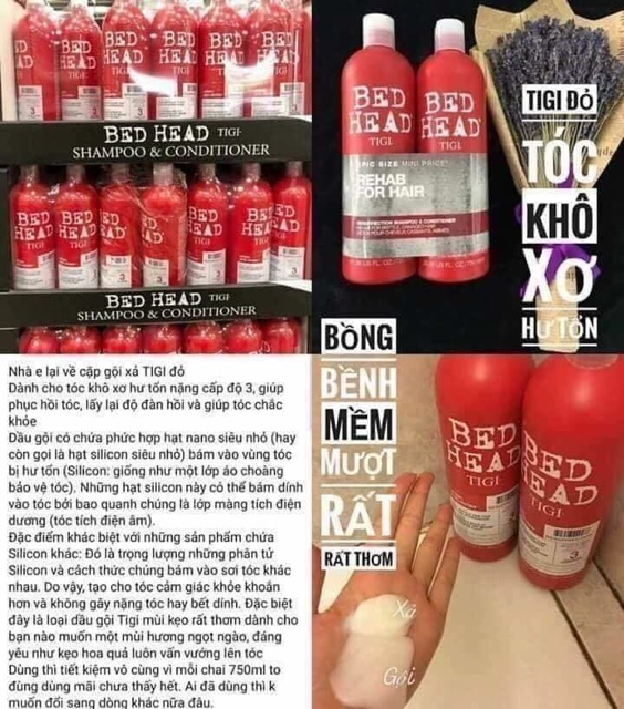 Cặp dầu gội, xả Tigi bed head màu đỏ, xanh siêu mượt tóc 🍄 Hẳn là Tigi là thương hiệu số 1 tại các salon tóc. Bộ tigi màu đỏ bán chạy nhất của Tigi phục hồi tóc suôn mượt 🍄 Em lấy được giá sale, bán theo cặp, mỗi chai 750ml, gội cả năm k hết ý ạ :))) 🍄 Em phải công nhận là mùi Tigi này nó ngọt như kẹo, ngửi phê dã man ý. Em dám khẳng định ko có dầu gội nào thơm bằng mùi này luôn đấy. Các chị em nào đã từng ra hàng gội đầu thì chắc cũng biết được ưa chuộng đến cỡ nào. Sale sale sale giá cực sốc Giá chỉ : 1 cặp gội + xả. Ai k mua tiếc lắm đấy ạ 😂😂😂