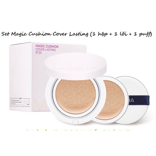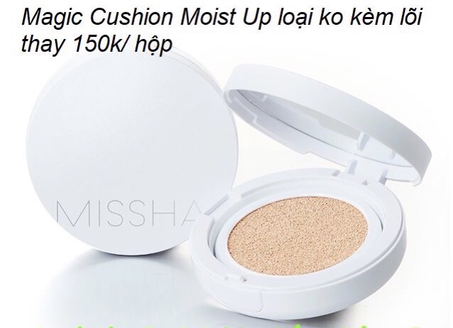 [HÀNG CÓ SẴN- GIÁ CHIẾT KHẤU] Shop về hàng chiết khấu Magic Cushion Missha nhé mọi ng, cái này gần như k bao giờ sale 50% chỉ có mua chiết khấu mới dc giá tốt nha mọi người, hàng chiết khấu tất nhiên hãng k xuất bill, vì mỗi 1 số lượng sẽ có 1 mức giá khác nhau, ai tin tưởng shop thì cứ yên tâm mua nhé, mẫu hộp trắng bóng chữ bạc đã ngừng sản xuất r nha mn, năm 2018 Missha ra loại vỏ nhám như Ann up r Shop về 2 loại, mn đọc kĩ ko lại chọn nhầm nha 1/ SET 1 HỘP 1 LÕI 1 PUFF Missha Magic Cushion Cover Lasting SPF50+ PA+++ ( Dành cho da dầu) #290k/ SET - Thiết kế sang trọng và tiện lợi hơn, với vỏ hộp được thiết kế mỏng hơn cho với phiên bảng cũ đồng thời logo Missha được in rõ trên nắp hộp, cùng tone màu hồng nhẹ xinh xắn, trẻ trung. Phấn nước nền Missha M Magic Cushion với khả năng che phủ hoàn hảo giúp che phủ tốt các khuyết điểm trên da. - Duy trì lớp trang điểm trong thời gian dài mà không xảy ra hiện tượng xuống tông khiến khuôn mặt bị tối. Phấn tạo cảm giác da mướt, mượt mà không bị mốc hay khô da. - Độ kiềm dầu tốt, phù hợp với cả bạn da dầu hay hỗn hợp dầu đến da thường. - Thành phần chính +Nước cây tre, chiết xuất cây baobap, nước cây phỉ nguyên chất giúp làm dịu da và cung cấp dưỡng chất cho da. - Bổ sung nước khoáng và cây phỉ giúp se da, khít lỗ chân lông, tăng cường dưỡng ẩm, tạo nên một bề mặt make up mịn màng, bóng khoẻ và tự nhiên nhất. 2/ HỘP KO KÈM LÕI Magic Cushion Moist Up SPF50+ PA+++: (Dành Cho Da Khô) #200k/ HỘP So với phiên bản trước, phiên bản lần này hãng đã cho cải tiến hơn rất nhiều trong thành phần. Lần này hãng đã tiến đến sản phẩm dành cho da khô, da dễ mất nước. Bạn sẽ có ngay lớp makeup và dưỡng ẩm mà không sợ mốc nền (điều dáng sợ khi makeup nếu thiếu ẩm) Chứa thành phần chiết xuất từ các loại hoa: + Nước từ hoa Sen / hoa Bắp / hoa Hồng giúp cung cấp độ ẩm và truyền sức sống cho da. + Dầu hoa Anh Thảo chiều / hạt Rum / hạt Hướng Dương giúp cân bằng lượng dầu - nước và khóa lại độ ẩm trên da. ► Cả 2 loại đều có 2 tone Phấn Nước Missha M Magic Cushion có 2 tone: - No.21 da sáng - No.23 da tự nhiên Ann
