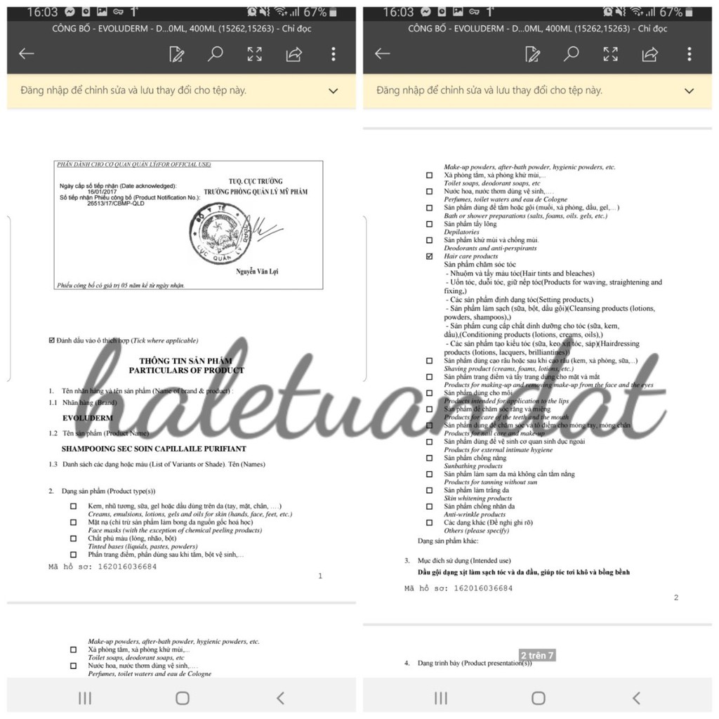 Dầu gội đầu khô Evoluderm 200ml Da đầu nhiều dầu nhờn dẫn đến mái tóc bết dính luôn khiến bạn mất tự tin. Nếu như trong trường hợp bạn quá bận rộn, không kịp làm sạch tóc thì dầu gội khô chính là sự lựa chọn không thể hoàn hảo hơn dành cho mái tóc lúc này đấy!. Dầu gội khô Evoluderm Shampooing Sec Purifiant là sản phẩm vừa tiện lợi, lại hiệu quả và tiết kiệm vô cùng chắc chắn sẽ trở thành cạ cứng của những cô nàng, anh chàng bận rộn hay thường xuyên đi du lịch. Thành phần chi tiết: Xem trên bao bì sản phẩm Với công thức hấp thụ bã nhờn trên tóc nhanh chóng mà không cần dùng đến nước, bạn chỉ cần 2-5 phút với dầu gội khô Evoluderm Shampooing Sec Purifiant là đã có ngay một mái tóc mềm mượt và không còn bết dính rồi. Ngoài ra, sản phẩm còn được bổ sung nhiều dưỡng chất thiết yếu cho tóc, góp phần nuôi dưỡng mái tóc chắc khỏe và đảm bảo không làm hư tổn đến tóc và da đầu. Hướng dẫn sử dụng: – Lắc đều chai trước khi sử dụng. – Đặt vòi xịt cách tóc khoảng 15cm, lật từng lớp tóc và xịt vào chân tóc. – Lấy tay xoa đều đến khi dầu gội thấm đều cả tóc. – Dùng lược chải cho tóc vào nếp, nếu bạn muốn sạch hơn thì lấy khăn lau bọt dư trước khi chải. Lưu ý: Sản phẩm chỉ có công dụng tạm thời, không thể thay thế hoàn toàn cho dầu gội nên bạn vẫn phải làm sạch lại tóc theo cách thông thường nhé! ----------------------------- THÔNG TIN CHUNG: HSD: 3 Năm kể từ ngày sản xuất. Xem chi tiết DATE trên bao bì Nơi sản xuất sản phẩm: Pháp Xuất xứ thương hiệu: Pháp Evoluderm là dòng sản phẩm an toàn với làn da, tất cả sản phẩm đều được sản xuất tại Pháp theo quy trình nghiệm ngặt và tuân thủ mọi nguyên tắc an toàn với da liễu. Vui lòng tham khảo kĩ và cân nhắc trước khi sử dụng nếu da bạn nhạy cảm với một trong những thành phần của sản phẩm. An toàn với phụ nữ mang thai hoặc đang cho con bú. Tuy nhiên để an tâm nên tham khảo thêm lời khuyên của bác sĩ trước khi sử dụng. Chat ngay với nhân viên tư vấn của Evoluderm qua khung chat nếu cần hỗ trợ tư vấn trước khi sử dụng để có một trải nghiệm tốt nhất về sản phẩm nhé. Evoluderm là thương hiệu xuất xứ Pháp được chính thức sáng lập bởi Nathalie & Gabriel vào năm 2004. Khởi đầu từ niềm đam mê về mỹ phẩm chăm sóc da ấp ủ từ những năm 1984, họ đã hợp tác cùng các nhà khoa học với tham vọng phát triển một thương hiệu mỹ phẩm riêng, đạt các tiêu chuẩn về chất lượng, vừa túi tiền của mọi người, và kể từ đó thương hiệu Evoluderm chính thức ra đời. Các sản phẩm Evoluderm sau đó nhanh chóng được phân phối rộng khắp tại 4 Châu lục và 60 quốc gia trên toàn cầu. #xitkho #daugoikho #evoluderm #dầugộikhô #dầugội #dầugôikhôevoluderm #gộikhô