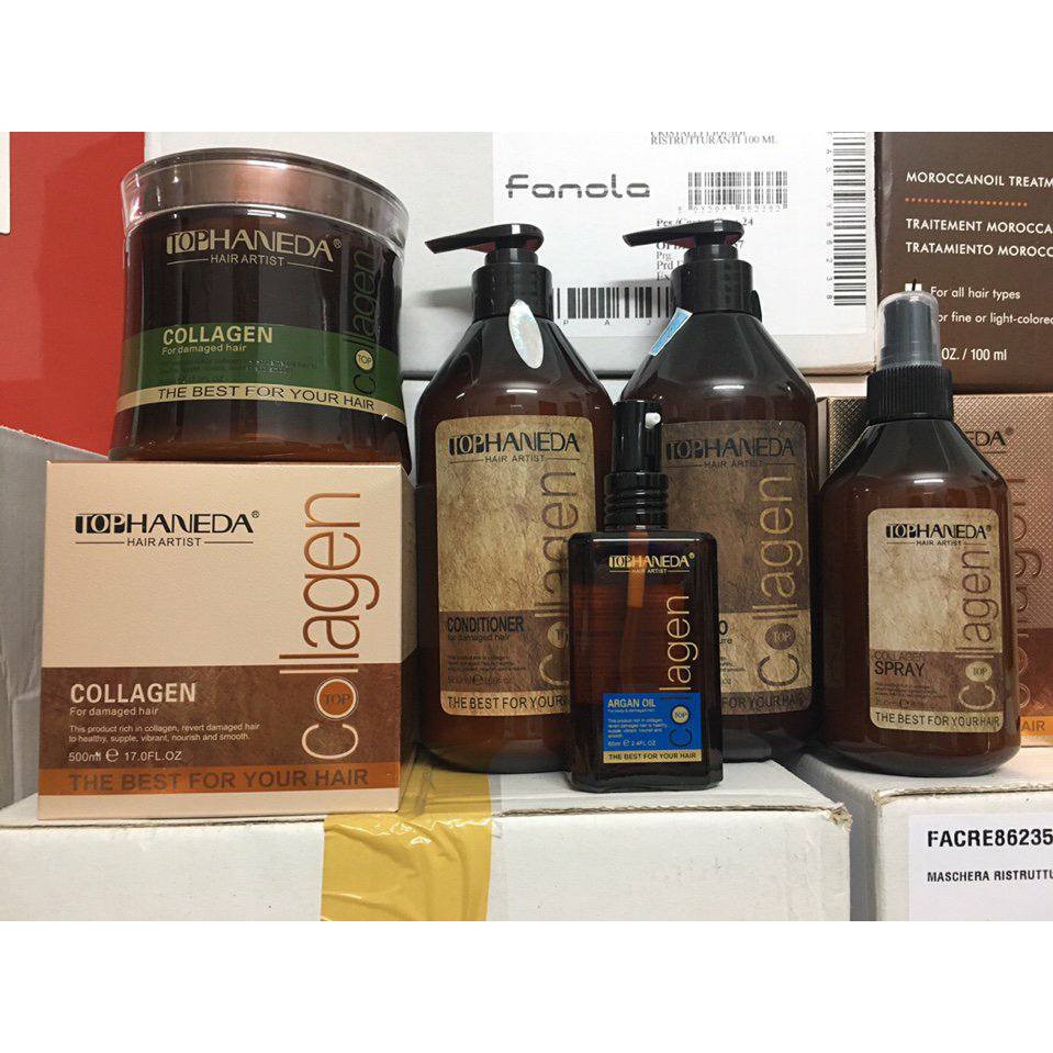TINH DẦU DƯỠNG TÓC HANEDA COLLAGEN 60ML – Xuất xứ : Ý – Thể tích : 785ml – Thương hiệu : HANEDA – Loại sản phẩm : Phục hồi tóc hư tổn, khô xơ, chẽ ngọn Công dụng: Với dưỡng chất collagen giúp dưỡng làm mềm mượt dành cho tóc hư tổn, phục hồi cấu trúc tóc, mùi thơm quyến rũ. mang lại độ bóng mềm cho tóc.