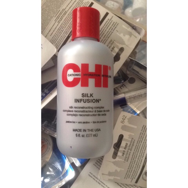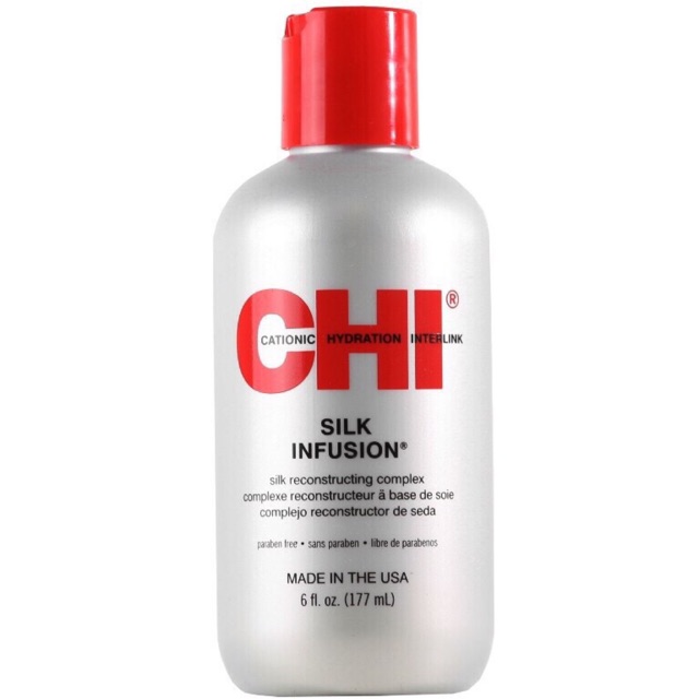 Tinh chất Dầu Dưỡng CHI Silk Infusion 177ml Xuất xứ: Mỹ Dung tích: 177ml Tinh Dầu Dưỡng Tóc CHI Silk Infusion 177ml mang lại mái tóc bóng mượt đặc biệt mùi thơm cực kỳ quyến rũ suốt cả ngày. Các bạn sẽ không còn phải lo lắng về mái tóc thiếu sức sống của mình, sợ tóc sẽ bị bết lại và bắt bụi khi dùng dưỡng bóng tóc nữa. Với thành phần dưỡng tóc tự nhiên và hương thơm quyến rũ CHI SILK INFUSION sẽ mang đến cho tóc bạn sự mượt mà và Đặc biệt với tinh dầu dưỡng được cô đặc, chỉ cần cho một ít dầu dưỡng vào lòng bàn tay, xoa nhẹ và bôi lên tóc, bạn sẽ cảm nhận được hiệu quả tức thì của dưỡng bóng Khi từng sợi của bạn sẽ trở nên tóc bóng mượt, tơi đều nằm theo những nếp tóc mà bạn mong muốn. Hướng dẫn sử dụng : Các nàng chỉ cần cho một ít dầu dưỡng vào lòng bàn tay,xoa nhẹ và bôi lên tóc ,bạn sẽ cảm nhận được hiệu quả tức thì của dưỡng bóng tóc CHI,khi từng sợi của bạn sẽ trở nên tóc bóng mượt , tơi đều nằm theo những nếp tóc mà bạn mong muốn.