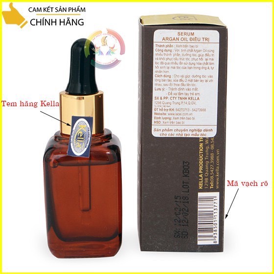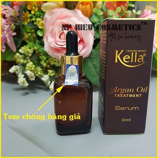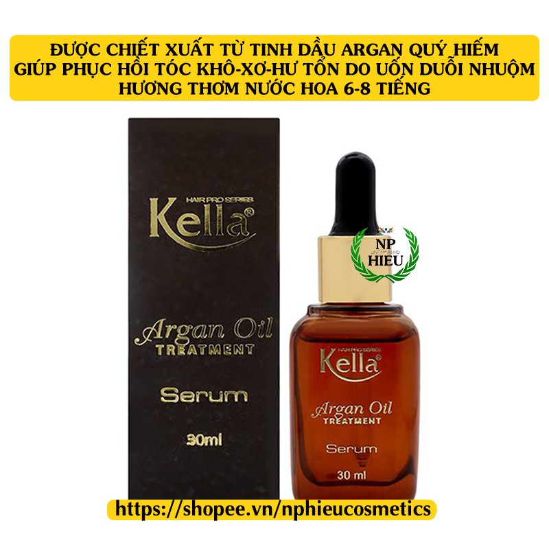 Sản phẩm này là hàng chính hãng công ty Kella phân phối do Shop NP Hieu Cosmetics phân phối,trên nắp chai có tem chống hàng giả in đậm rõ nét.Nếu phát hiện hàng giả vui lòng thông báo cho chúng tôi để kịp thời xử lý. Công dụng: -Dùng cho tóc đã qua uốn-duỗi-nhuộm nhiều lần bị khô,xơ,chẻ ngọn và sợi tóc bị cháy nắng,kích thích tóc mọc dài nhờ thành phần đặc biệt trong sản phẩm. Với tinh chất Argan Oil cùng nhiều thành phần dưỡng tóc, giúp điều trị và khôi phục cấu trúc tóc, phục hồi lại mái tóc đã qua nhiều lần sử dụng hóa chất làm hồi sinh lại mái tóc của bạn trông óng ả tự nhiên hơn. Với mùi thơm cải tiến cực gì hấp dẫn,đảm bảo 100% khách hàng khó tính nhất cũng phải cúi đầu hài lòng. Cách dùng: Cho vài giọt dưỡng tóc vào lòng bàn tay, xoa đều 2 mặt bàn tay lại với nhau, sau đó xoa đều lên tóc. Lưu ý: - Bảo quản nơi thoáng mát. - Tránh dính vào mắt. - Để xa tầm tay trẻ em. Thể tích:30ml dạng serum huyết thanh đậm đặc không bết dính. Xuất xứ: Việt Nam