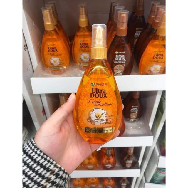 Sau bao năm tìm kiếm cũng tìm ra được #CHÂN_ÁI CỦA CÁC LOẠI #DƯỠNG_TÓC ĐÂY AH Em này cực kì phù hợp và chắc chắn nên là lựa chọn của những bạn tóc bị khô, hư tổn do dùng nhiều hóa chất. DẦU DƯỠNG TÓC SIÊU MỀM GARNIER ULTRA Dùng cả năm không hết mà không hề bị bết 👌 🍀Với thành phần chủ yếu từ tinh dầu Argan là loại nguyên liệu "vàng lỏng" của châu lục Bắc Phi có quá nhiều chất dinh dưỡng cần thiết cho tóc, giúp tóc hư tổn, đuôi tóc xơ xác được phục hồi, trở nên chắc khỏe, bóng mượt và vào nếp hơn rất rất nhiều. Ngoài ra, sản phẩm còn chứa dầu Camellia (cây hoa trà), còn được biết tới như một bí quyết chăm sóc mái tóc hàng ngày rất hiệu quả của người Nhật Bản. Axit olein trong Camellia giúp bảo vệ, cung cấp dưỡng chất làm bóng mượt tóc, phục hồi tóc khô, xơ cứng bị hư hỏng do qua hoá chất, giảm ngứa da đầu do dị ứng và gàu. Đặc biệt Camelia Oil kích thích mọc tóc và chống rụng tóc 🍀Hương thơm rất nhẹ nhàng quện vào từng lọn tóc, nàng nào tóc dài, hay xoăn thì mình chắc chắn sẽ cực kỳ cực kỳ yêu thích em ấy.