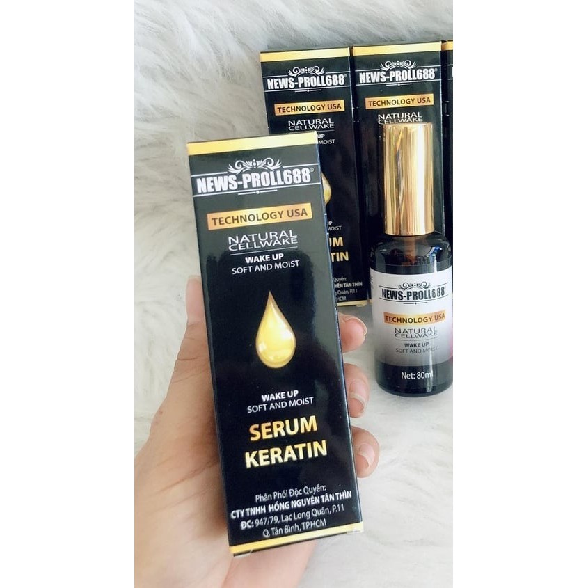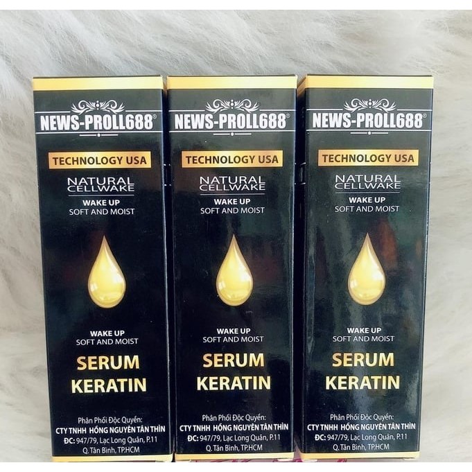 serum dưỡng tóc KERATIN 688 thành phần chính của tinh chất được chiết xuất từ dầu argan, sữa ông chúa, nước hoa hồng góp phần đem đến 3 tác dụng : + Cải thiện những hư tổn thường thấy đặc biệt nơi chân tóc như chẻ ngọn, khô,xơ,gãy rụng... + Giúp tóc chắc khỏe, dài, dày hơn + Hỗ trợ lưu giữ mái tóc thêm óng mượt và hiệu ứng 3D đẹp từ mọi góc nhìn - Hướng dẫn sử dụng : + Sử dụng 2-3 lần mõi ngày + Cho tóc ướt : Sau khi gội đầu sạch và để khô khoáng 70% lấy vài giọt dầu dưỡng thoa đều lên ngọn tóc và thoa thêm 1 lần nữa khi tóc đã khô hẳn + Cho tóc khô : lấy vài giọt tinh dầu dưỡng thoa đều lên tóc, massage nhẹ nhàng và tập trung ở phần tóc hư tổ