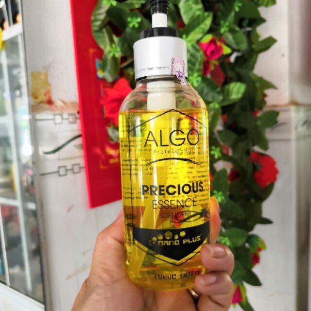 SERUM DƯỠNG TÓC ALGO VÀNG SERUM DƯỠNG TÓC PRECIOUS ESSENCE chứa tinh dầu Keratin dưỡng tóc bóng mượt giúp những mái tóc khô xơ, chẻ ngọn, bung xù được suôn mềm và bóng mượt với mùi hương dịu nhẹ và sang trọng. Bên cạnh đó tinh dầu tóc giúp cho tóc có thể giữ nếp lâu hơn. Đặc biệt không làm tóc dẹp, nặng xuống và trông tóc khỏe hơn. Cách sử dụng: cho một lượng vừa đủ vào lòng bàn tay xoa đều lên toàn bộ mái tóc. Đối với những phần tóc hư tổn và chẻ ngọn nên bôi với lượng nhiều hơn để tóc được suôn mềm, bóng mượt.