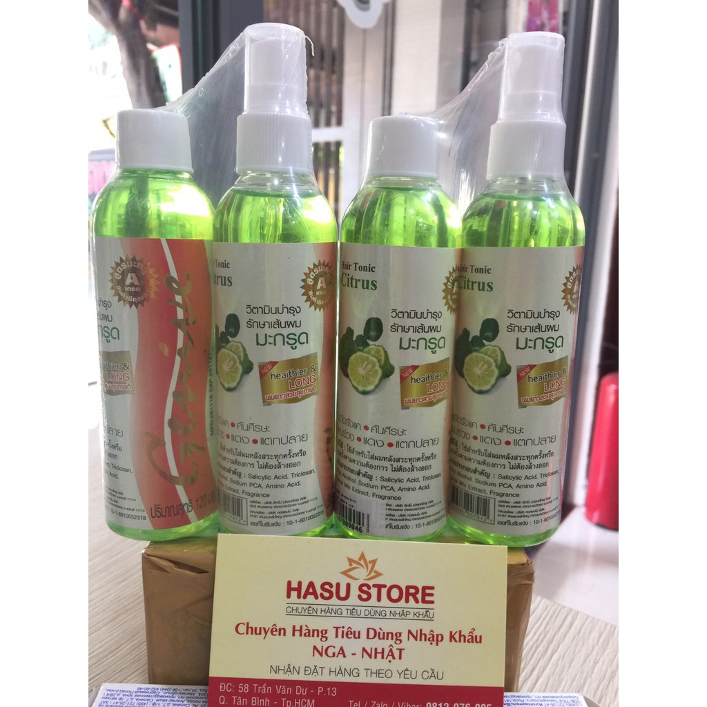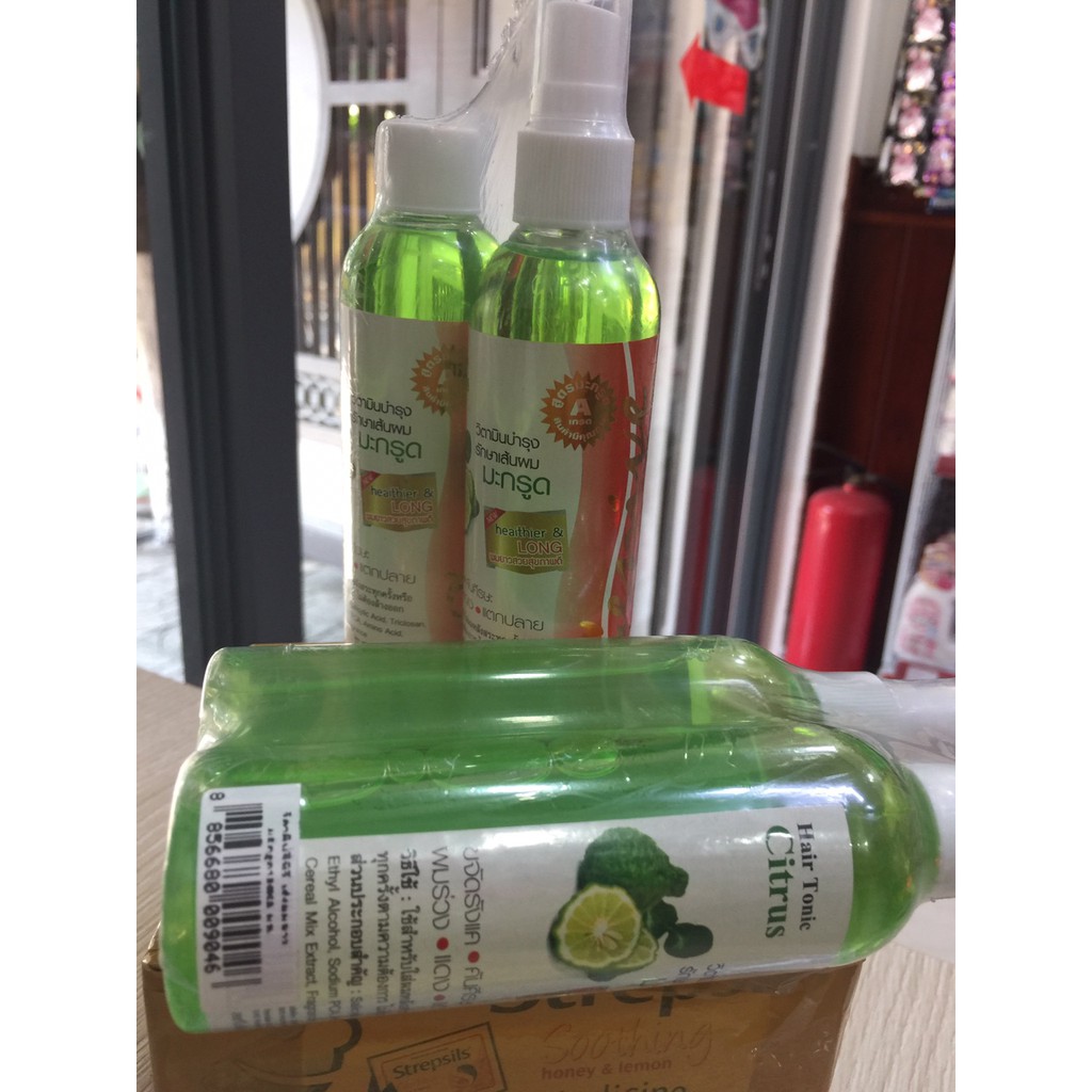 Xịt tinh dầu bưởi Citrus kích thích mọc tóc made in Thái Lan - Dung tích: 120ml/chai + tặng kèm 1 chai 120ml Chiết xuất 100% từ thảo dược. Giúp ngăn ngừa tóc rụng và kích thích chân tóc phát triển thúc đẩy tóc mọc nhanh hơn. - Dưỡng tóc khỏe hơn, chân tóc chắc khỏe hơn và tốt cho da đầu. - Dành cho những bạn mong muốn sở hữu mái tóc dầy và dài nhanh chóng. Bị hói, hay rụng tóc. Giúp tóc dầy và nhanh dài, không làm bết tóc, ko gây kích ứng. Cách dùng: Sử dụng ngày 2 lần khi tóc sạch, tốt nhất là sau khi gội đầu, tóc khô. Xịt trực tiếp vào chân tóc hoặc xịt ra tay, sau đó thoa vào chân tóc (Chú ý: Xịt vào chân tóc hiệu quả hơn xịt vào thân tóc). Dùng tay massage nhẹ từ 3 - 5 phút. Không cần gội đầu lại.