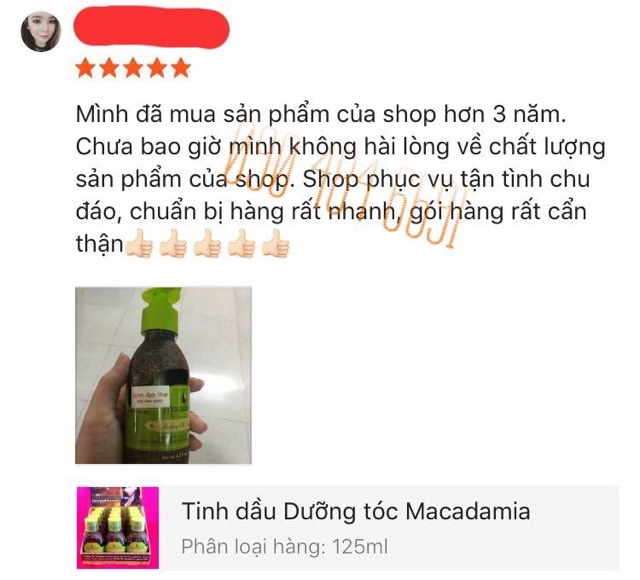 Sản phẩm Tinh Dầu Dưỡng Tóc Macadamia nhận được 31 lượt đánh giá tích cực từ những người mua khác. Bấm vào nút Xem Đánh Giá để chuyển sang phần đánh giá của người dùng đã mua hàng.