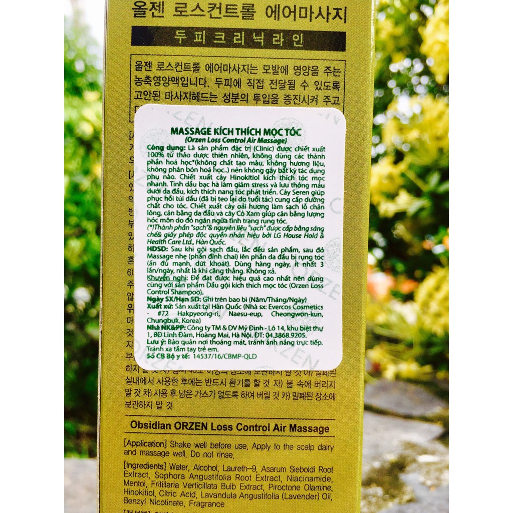 MASSAGE ORZEN KÍCH THÍCH MỌC TÓC 180ml Xuất xứ: Hàn Quốc ***** TÁC DỤNG: - Là sản phẩm đặc trị (Clinic) được chiết xuất 100% từ thảo dược thiên nhiên, không dùng các thành phần hóa học (không chất tạo màu, không hương liệu, không phân bón hóa học,... ) nên không gây bất kì tác dụng phụ nào - Chiết xuất cây Hinokitiol kích thích mọc tóc nhanh - Tinh dầu bạc hà làm giảm stress và lưu thông máu dưới da đầu, kích thích nang tóc phát triển tự nhiên - Cây Seren sẽ phục hồi túi dầu (đã bị teo do tuổi tác) cung cấp dưỡng chất cho tóc - Chiết xuất cây oải hương làm sạch lỗ chân lông, da đầu, cân bằng da đầu, và cây cỏ Xam giúp cân bằng lượng hooc môn, do đó ngăn ngừa tình trạng rụng tóc ***** HƯỚNG DẪN SỬ DỤNG: - Sau khi gội sạch đầu, lắc đều sản phẩm, sau đó massage nhẹ (sử dụng phần đinh chai) lên phần da đầu bị rụng tóc ( ẩn đủ mạnh và dứt khoát) - Dùng hằng ngày, ít nhất 3 lần / 1 ngày, nhất là khi căng thẳng - Không xả lại +++ Khuyến nghị: Để đạt được hiệu quả cao nhất nên dùng cùng với sản phẩm dầu gội kích thích mọc tóc ORZEN ------------------------------------ TƯ VẤN VÀ ĐẶT HÀNG NHANH NHẤT: Call now #pulishop 0969077082 zalo trực chiến nhé!!! ................................... 0933075093 zalo _ viber Instagram: pulihouse_hairmark <= follow me Web: puli.vn hoặc myphamtocsaigon.vn Ship COD toàn quốc!!!
