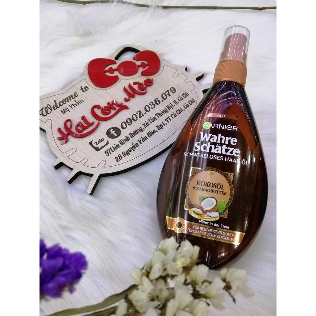 🌸 Công dụng: - Dưỡng tóc mềm mượt, làm giảm khô xơ của đuôi tóc. - Phục hồi tóc hư tổn, nuôi tóc bóng khoẻ. - Giúp tóc vào nếp, giữ nếp lâu hơn. 🌸 Chất serum không quá đặc cũng không quá lỏng (1 lần bơm là đủ cho mái tóc dài ngang vai), thấm nhanh và không hề gây bết dính, giúp mái tóc mềm mượt ngay sau khi dùng. Dầu dưỡng tóc Garnier còn có mùi thơm ngọt ngào, thanh nhẹ, lưu hương trên tóc khá lâu. Một mái tóc suôn mềm bồng bềnh lại luôn thoang thoảng mùi hương thì còn gì tuyệt hơn các cậu nhỉ 😍 👏 HDSD: - Sau khi gội đầu, sấy khô tóc khoảng 70%, lấy ra 1-2 giọt dầu dưỡng xoa đều giữa hai lòng bàn tay rồi vuốt lên tóc, cách chân tóc khoảng 2cm