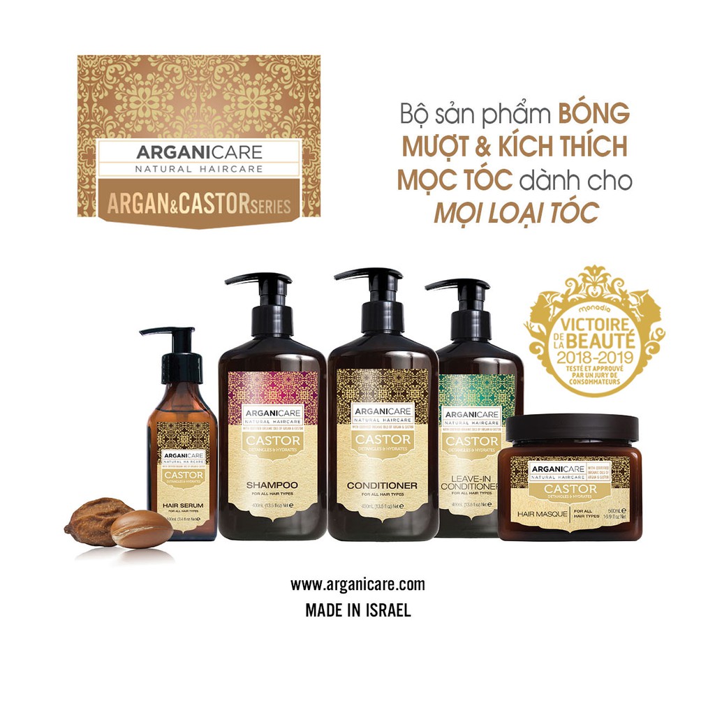 TINH DẦU DƯỠNG TÓC ARGANICARE CASTOR 100ML TINH DẦU PHỤC HỒI CASTOR Tinh dầu CASTOR chứa dầu Argan và Castor quý giá, duy trì cân bằng độ ẩm cho lớp biểu bì tóc, kích thích mọc tóc và tăng cường sức mạnh cho sợi tóc, chống gãy rụng. Tinh dầu cải thiện độ đàn hồi, cho tóc vẻ đẹp tự nhiên. Tóc trở nên mềm mượt, bóng sáng và dầy dặn. Cách sử dụng: Lấy 1 lượng vừa đủ thoa đều lên khắp mái tóc. – Dung tích: 100ml – Hạn sử dụng: 3 năm – Xuất sứ: ISRAEL – Thương hiệu : ARGANICARE – Loại tóc: DƯỠNG ẨM, PHỤC HỒI VÀ CHỐNG RỤNG #Arganicare ,#ARGANICARESHEABUTTER ,#ARGANICARECASTOR ,#ARGANICAREKERATIN ,#ARGANICARECOLLAGEN ,#phuchoitoc ,#kicthichmoctoc ,#chongRungtoc ,