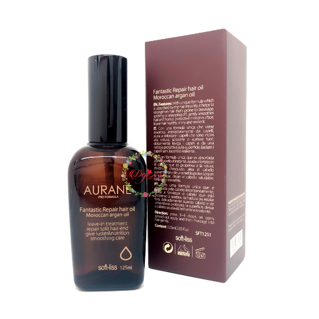 TINH DẦU DƯỠNG VÀ PHỤC HỒI TÓC AURANE PHÁP 125ML Dạng Gel lỏng, kết hợp tinh dầu ARGAN, cung cấp dưỡng chất tạo độ bóng mượt cho tóc đặc biệt với thành phần hạt siêu mịn hàn gắn lõi tóc, thẩm thấu nhanh, không bết tóc, phục hồi cho mái tóc sang đẹp. Là dòng sản phẩm dưỡng tóc cao cấp với hàm lượng dưỡng chất cao và công thức đặc biệt giúp dưỡng chất thấm sâu vào lõi tóc phục hồi tóc hư tổn nhanh chóng đồng thời tạo lớp màng bao phủ tóc giúp tóc bóng mượt tức thì và chống lại các tác nhân gây hại cho tóc từ môi trường Tinh dầu chăm sóc tóc Softliss dành riêng cho các bạn có mái tóc hư tổn, uốn, nhuộm, duỗi thường xuyên khiến mái tóc xác xơ và chẻ ngọn. Chỉ sau 1 tuần sử dụng tinh dầu phục hồi tóc của Softliss đảm bảo tóc bạn sẽ mềm mượt và óng ả hơn trông thấy.