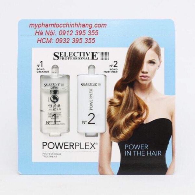 PHỤC HỒI TÓC #SELECTIVE #POWERPLEX Được thiết kế với công thức phân tử, dễ thẩm thấu vào từng sợi tóc, tạo ra mối liên kết với cấu trúc protein trong tóc, mang đến sức sống mới cho tóc, giúp tóc ngày càng chắc khỏe và bóng mượt. Để phục hồi tóc tại nhà, việc dùng power plex khá đơn giản. Bước 1, bạn cần gội sạch da đầu và tóc với dầu gội bổ sung dinh dưỡng. Bước 2, trộn 16ml Powerplex 1 với 90ml nước, xoa đều lên tóc, dùng lược chải đều cho sản phẩm ngấm kỹ vào tóc, để 5 -10p, không xả nước. Bước 3, bôi powerplex 2 lên tóc, chải đều cho sản phẩm ngấm kỹ vào tóc. Chờ 10 phút rồi xả sạch. Set dùng thử 8ml/10ml giá #90k. Bán từ 2 set