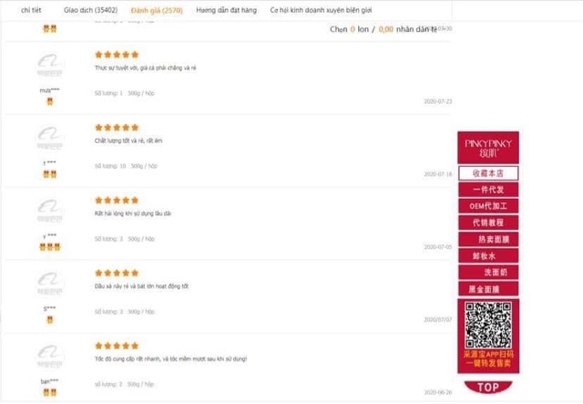 Sản phẩm Kem Ủ Tóc Pinky Pinky nhận được 191 lượt đánh giá tích cực từ những người mua khác. Bấm vào nút Xem Đánh Giá để chuyển sang phần đánh giá của người dùng đã mua hàng.