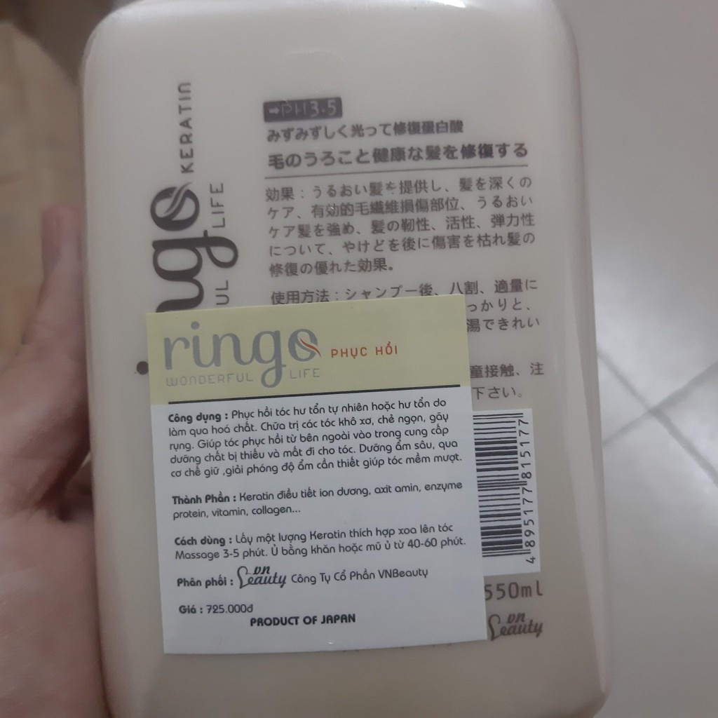 Sản phẩm Hấp Ringo Keratin Siêu Phục Hồi Tóc Nát 550Ml hiện tại đang được bán online với giá tốt nhất trên thị trường là 400.000đ