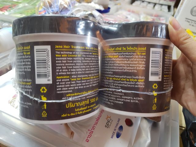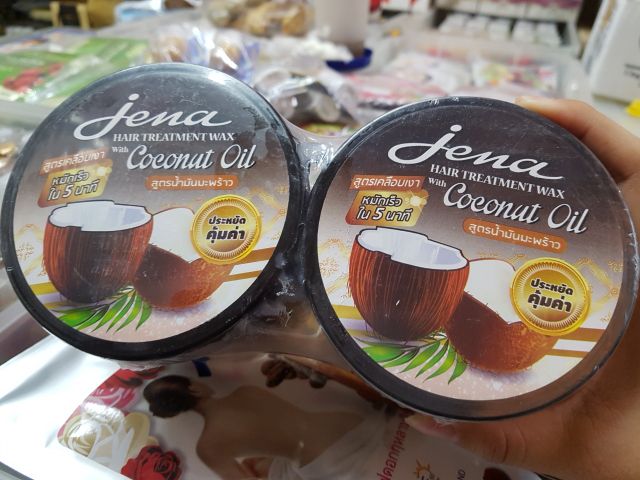 🍊KEM HẤP Ủ TÓC JENNA DỪA THÁI LAN🍊 💰 hộp 500gr Xuất xứ: Thái Lan Sản phẩm phù hợp với tất cá các loại tóc như tóc dầu, tóc khô, tóc gãy rụng, tóc chẻ ngọn, tóc nhuộm, uốn, tóc hư tổn nặng, tóc yếu… 🔰🔰 Công dụng : ♦️ Kem ủ tóc tinh dầu dừa Jena với thành phần dưỡng chất chiết xuất từ tinh dầu dừa, giúp phục hồi tóc nhờ vitamin, khoáng chất, giúp tóc mềm mại, bóng mượt lâu dài. Bên cạnh đó còn có tác dụng cải thiện cấu trúc tóc, giảm hư tổn và phục hồi từ gốc đến ngọn. ♦️ Kem ủ tóc Jena tinh dầu dừa dễ dàng thấm sâu vào lõi tóc, nuôi dưỡng từng sợi tóc vì vậy chỉ sau 1 lần sử dụng bạn sẽ cảm nhận được sức sống mới trên mái tóc của mình. ♦️ Dầu hấp tóc tinh chất dầu dừa JENA HAIR TREATMENT WAX có khả năng giữ độ ẩm và thẩm thấu cao, chứa nhiều chất bảo vệ tóc (Vitamin C, E, Protein), giúp cho mái tóc siêu mượt, siêu nhẹ và độc đáo, giúp bảo vệ, chăm sóc tóc đến các lớp biểu bì nằm sâu trong da đầu, đồng thời bổ sung Protein và kích thích sự trao đổi chất giúp bạn không còn tóc chẻ ngọn và luôn giữ ẩm cho tóc.