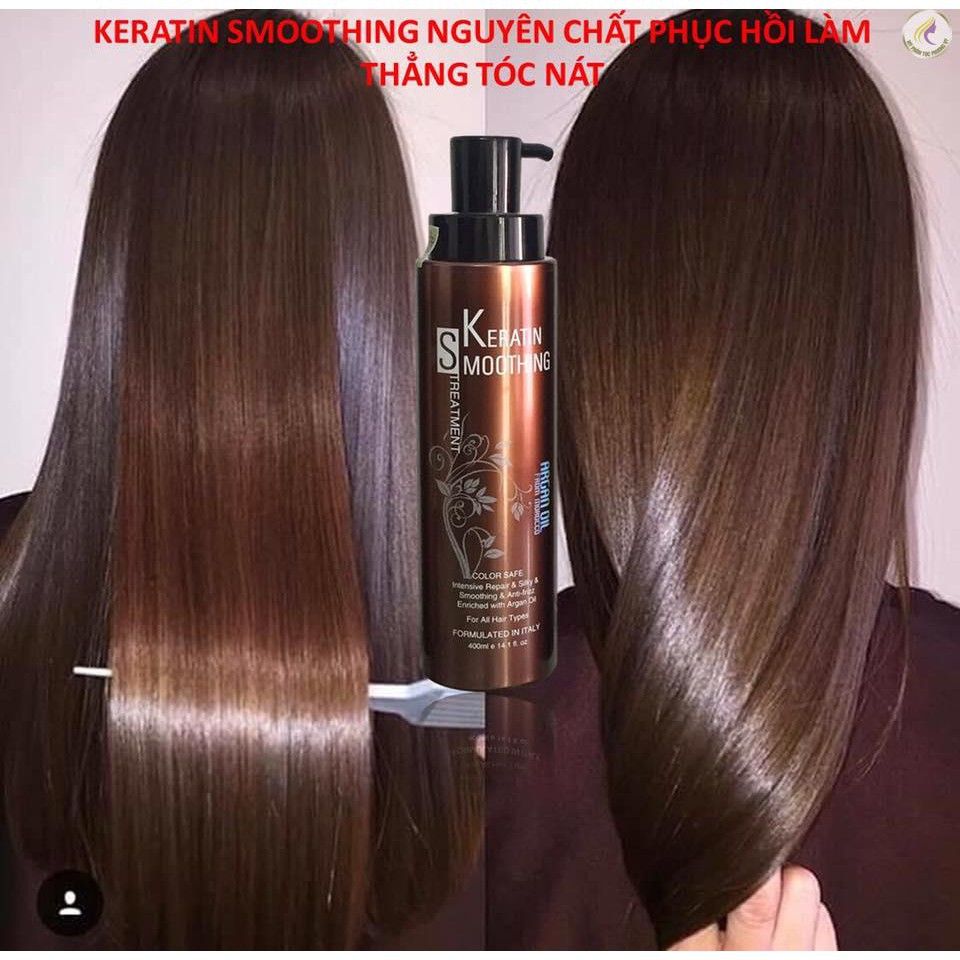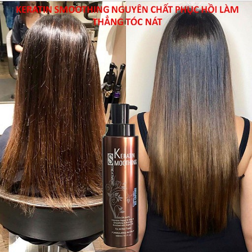 KERATIN CHUYÊN CHẤT SMOOTHING TREAMENT PHỤC HỒI LÀM THẲNG TÓC NÁT Dung tích : 400ml Hàng mới về - Hiệu quả ít cay mắt Khi tóc bị sun cháy, hư tổn đến mức không thể cứu, chỉ có phương án cắt bỏ, thì hãy nghĩ đến phương pháp này. Sử dụng Keratin Smoothing treatment, phục hồi và làm thẳng tóc nát, giúp bạn có mái tóc muôn mượt bóng đẹp tạm thời trong vài tháng HƯỚNG DẪN SỬ DỤNG 1. Gội đầu, nhẹ nhàng massage rồi xả sạch 2. Sấy tóc khô 80% 3. Chia tóc thành những phần nhỏ bằng nhau, dùng kẹp để tách riêng từng phần tóc 4. Lấy 20ml – 50ml Keratin cho vào bát. Đeo găng tay trước khi sử dụng 5. Bôi Keratin lên từng phần tóc đã chia, bôi lên phần tóc yếu nát muốn phục hồi làm thẳng. 6. Kích nhiệt trong khoảng 20 phút, để nguội. 7. Dùng lược chải kỹ để loại bỏ sản phẩm thừa ra khỏi đầu. Sấy khô 100% 8. Chia tóc thành nhiều phần nhỏ. Sử dụng máy là ở nhiệt độ 220C, kẹp tóc là từ gốc đến ngọn cho đến khi tóc cảm thấy khô 9. Nên để 2-3 ngày rồi mới xả tóc, ko xả ngay sẽ làm giảm hiệu quả của thuốc