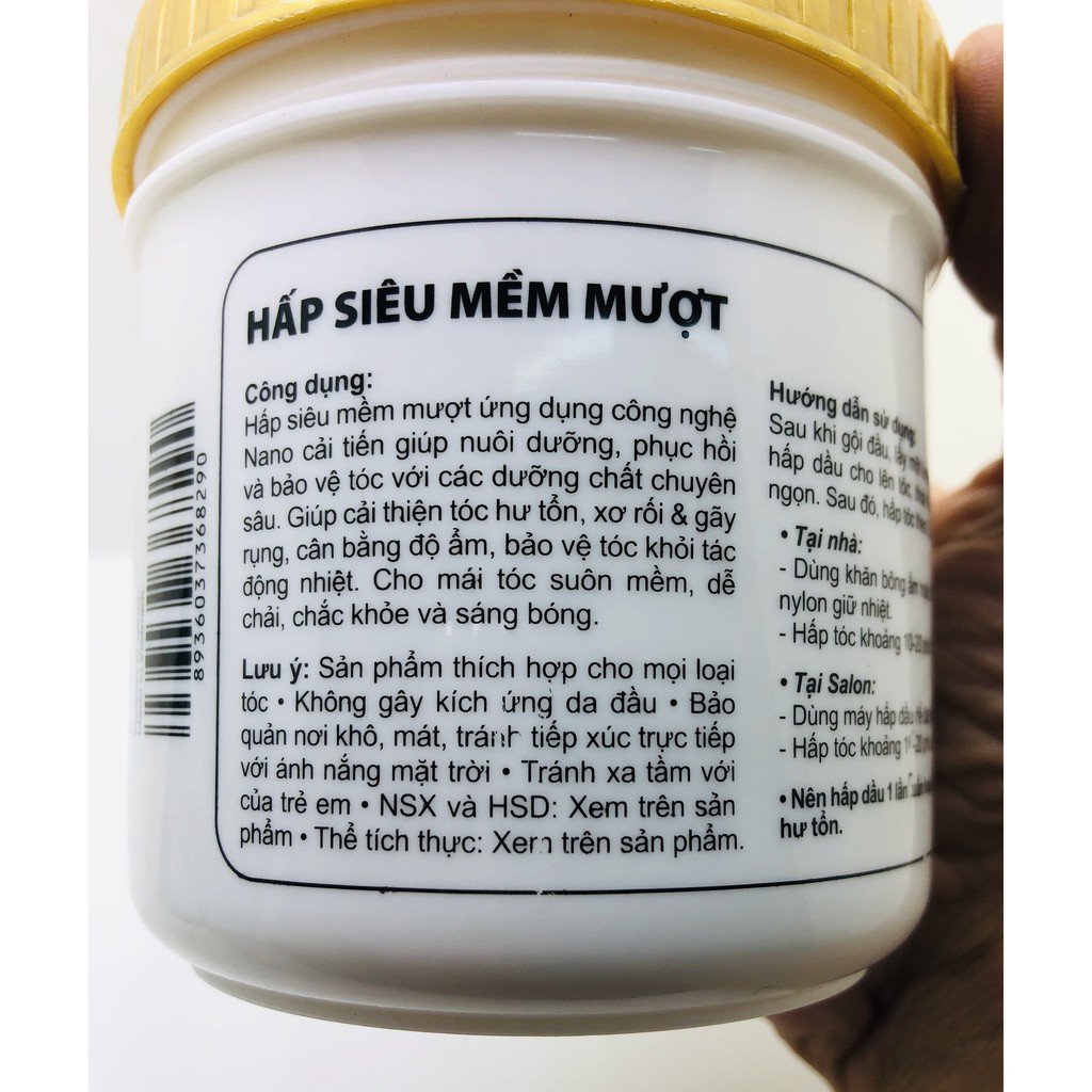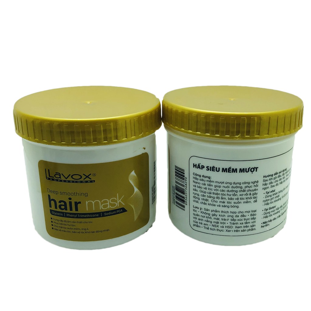 CÔNG DỤNG Hấp Siêu Mềm Mượt Lavox 500ml: Hấp siêu mềm mượt ứng dụng công nghệ Nano cải tiến vừa nuôi dưỡng vừa bảo vệ tóc với các dưỡng chất chuyên sâu. Giúp cải thiện tóc hư tổn, xơ rối & gãy rụng, cân bằng độ ẩm, bảo vệ tóc khỏi tác động nhiệt. Cho mái tóc suôn mềm, dễ chải, chắc khỏe và sáng bóng. DUNG TÍCH: 500ml HƯỚNG DẪN SỬ DỤNG: Sau khi gội đầu, lấy một lượng vừa đủ kem hấp dầu cho lên tóc, bôi đều và mát xa từ gốc đến ngọn. Sau đó, ủ tóc bằng khăn bông ấm hoặc trùm tóc bằng nylon giữ nhiệt (tại nhà) khoảng 10-20 phút/lần. Xả sạch. Nếu sử dụng máy hấp dầu ủ tóc sẽ đạt hiệu quả cao hơn. Sử dụng 1 lần/tuần hoặc 2 lần nếu tóc hư tổn