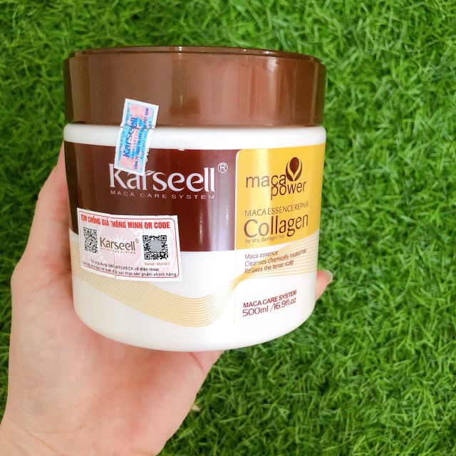 Sản phẩm Kem Hấp Phủ Lụa Collagen Maca Karseell Siêu Mềm Mượt Tóc 500Ml hiện đang được bán tại Shopee.
