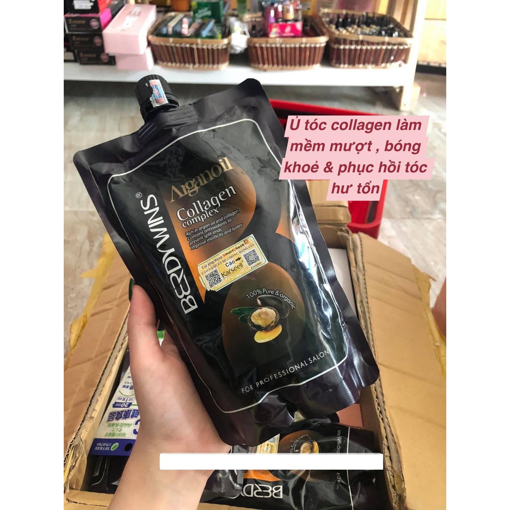 HẤP PHỤC HỒI BERDYWINS 500ML CAM KẾT CHÍNH HÃNG Hấp phục hồi Collagen Berdywins Arganoil với các thành phần dinh dưỡng được chiết xuất từ quả Argan thấm sâu vào những phần tóc hư nát. Thành phần collagen giúp bao bọc phần bên ngoài. Mái tóc của bạn sẽ chắc khỏe, mềm mại, và quyễn rũ hơn. Tóc không còn khô, xơ, yếu mà trở nên giữ ẩm, mềm mượt. Cách sử dụng: Thoa kem hấp phục hồi Collagen Berdywins lên tóc dùng máy hấp, kích khoảng 15 đến 25 phút sẽ cho mái tóc mượt mà, óng ả. Hoặc ủ nóng/ 30 phút, ủ lạnh/40 phút. Dùng kem hấp lên phần tóc khô nát rồi làm hóa chất, giúp sợi tóc chống lại nhiệt nóng của máy uốn, ép. HOTLINE : 0965.703.922 ZALO