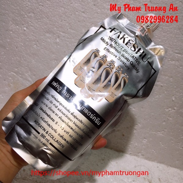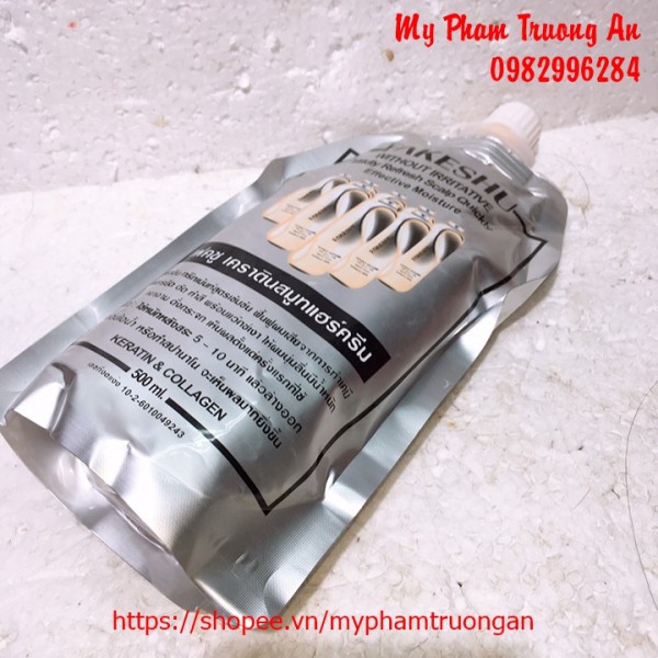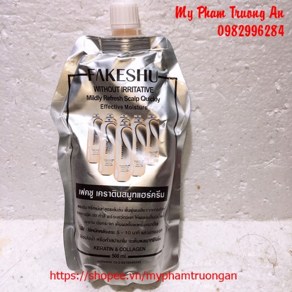 Sản phẩm Kem Ủ Hấp Tóc Lụa Tơ Tằm Fakeshu Keratin Collagen Thái 500Ml hiện đang được bán tại Shopee.