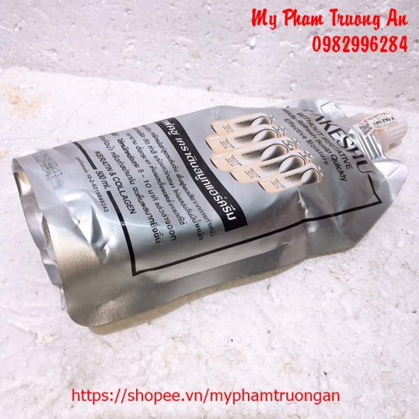 1. Kem ủ hấp tóc lụa tơ tằm Fakeshu Keratin Collagen Thái 500ml 2. Ủ tóc Fakeshu hấp lụa tơ tằm Keratin Collagen Ủ tóc Fakeshu siêu mềm mượt, chống hư tổn, gay rụng, đồng thời phục hồi tóc ➡ Dung tích : 500ml ➡ Xuất xứ : Thái Lan 🇹🇭 💯💯SIÊU MỀM MƯỢT Đi đầu xu hướng luôn, bây giờ salon toàn hấp loại này, phục hồi siêu mềm mượt như lụa luôn 💋 Hấp phủ lụa tơ tằm Fakeshu 👉🏻Chuyên phục hồi tóc sơ, tóc yếu, tóc hư tổn. giữ tóc bóng và mềm mượt sản phẩm tốt mà giá rẻ chỉ bằng 1 lần hấp ở ngoài salon 👉🏻Siêu hiệu quả ngay lần đầu sử dụng tóc trở nên mềm mượt hơn 👉🏻Dễ dàng sử dụng tại nhà như hấp dịch vụ cao cấp tại salon chuyên nghiệp. ❇️Thành phần: Sự kết hợp độc đáo giữa Keratin Collagen Nano Protein và Khoáng vi lượng giúp tái tạo 95% cấu trúc tóc hư tổn, sợi tóc sẽ trở nên dày, dai, đặc biệt siêu bóng mượt như lụa ❇️Cách sử dụng : Có thể dùng hấp, ủ , xả.Thời gian lưu kem khoảng 15-30 phút, massage nhẹ nhàng và xả lại bằng nước. Liên hệ 0983470875 hoặc 0976078164
